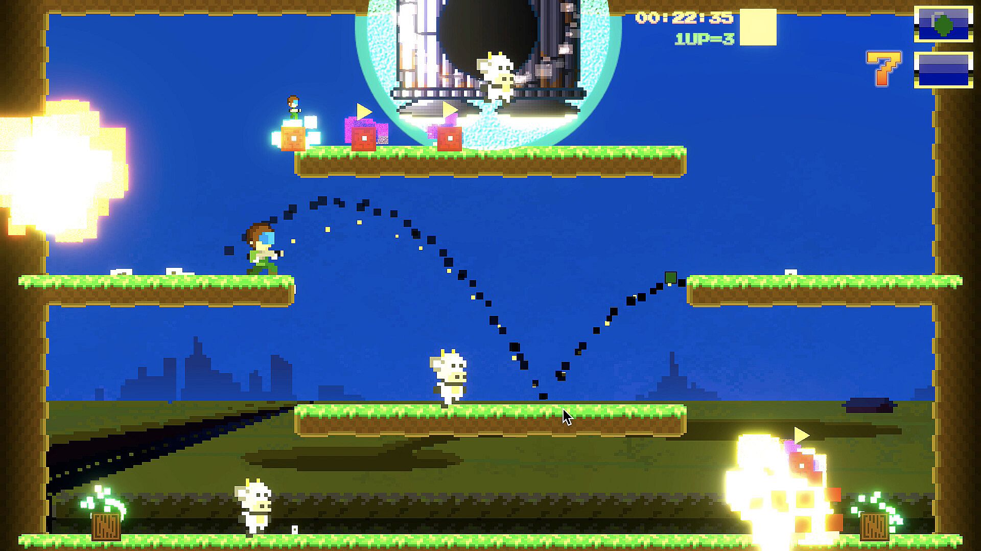 Progress through a series of retro-inspired action packed platforming combat challenges to find refugees and listen to their stories