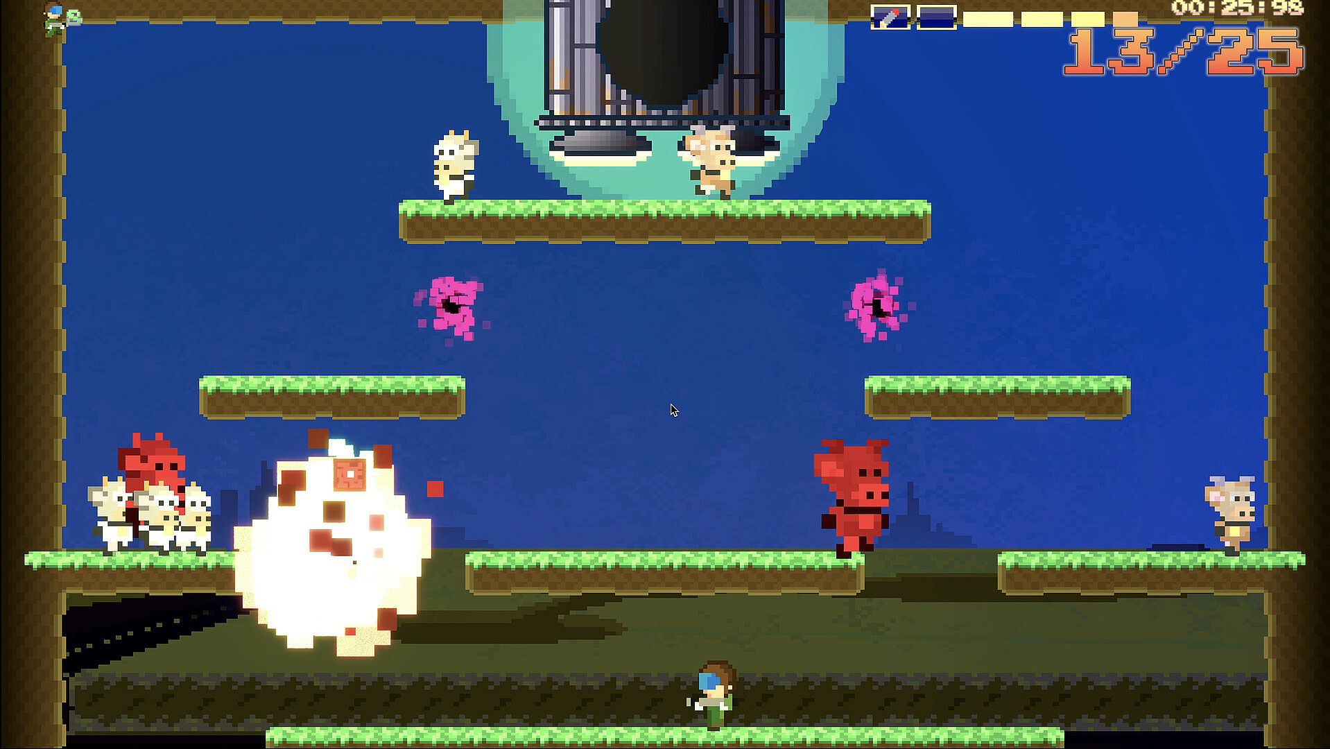 Stages randomly generated from a collection of hundreds of hand crafted rooms across 9 distinct biomes, with new rooms that unlock as you complete each one
