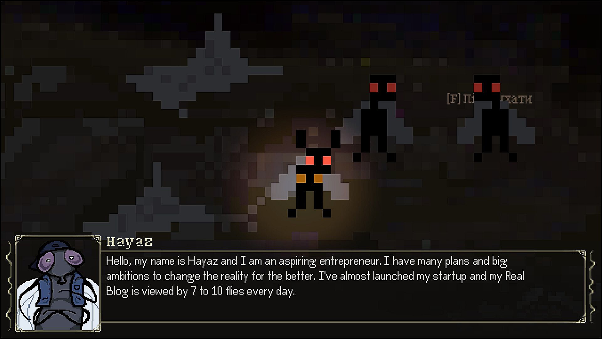 You’ll encounter long dialogues, quests, illustrated cutscenes, a bullet hell sequence, and scraps of toilet paper with curious lore about the game world.