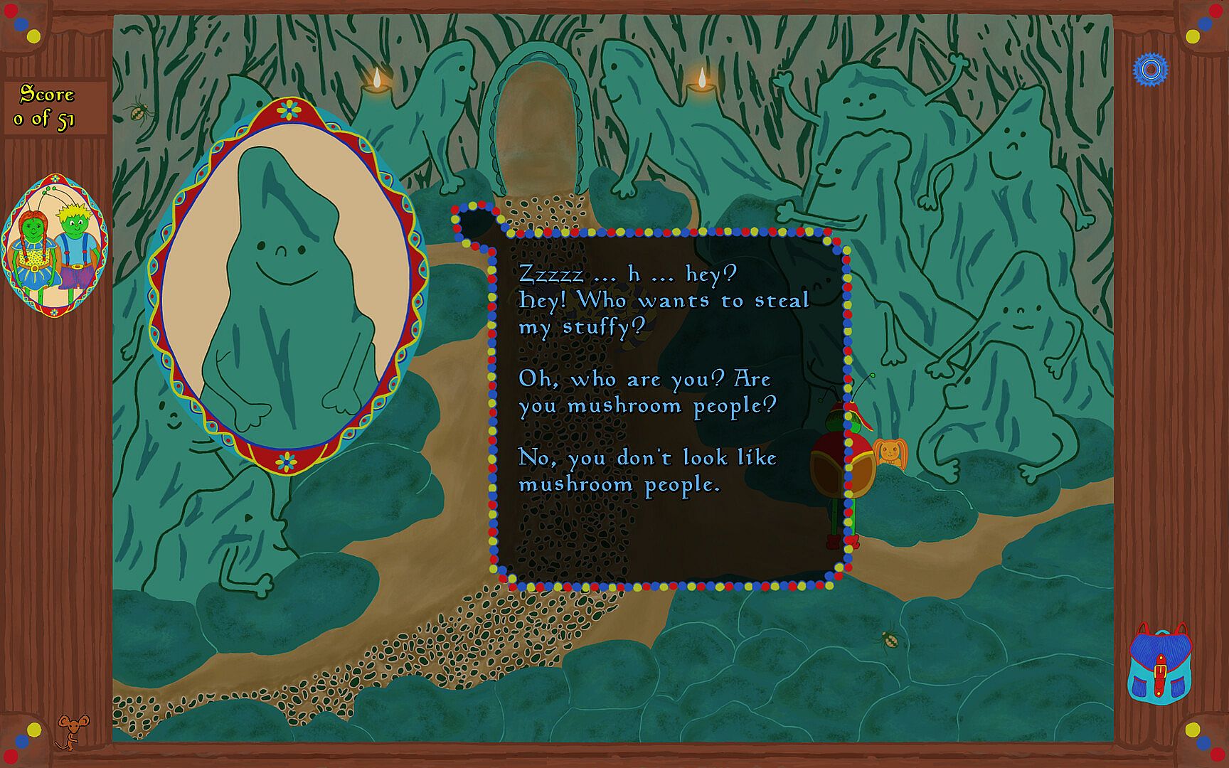 And so, their quest begins! Off they go to search for a nice gift for the mole so they can get their precious marble back.