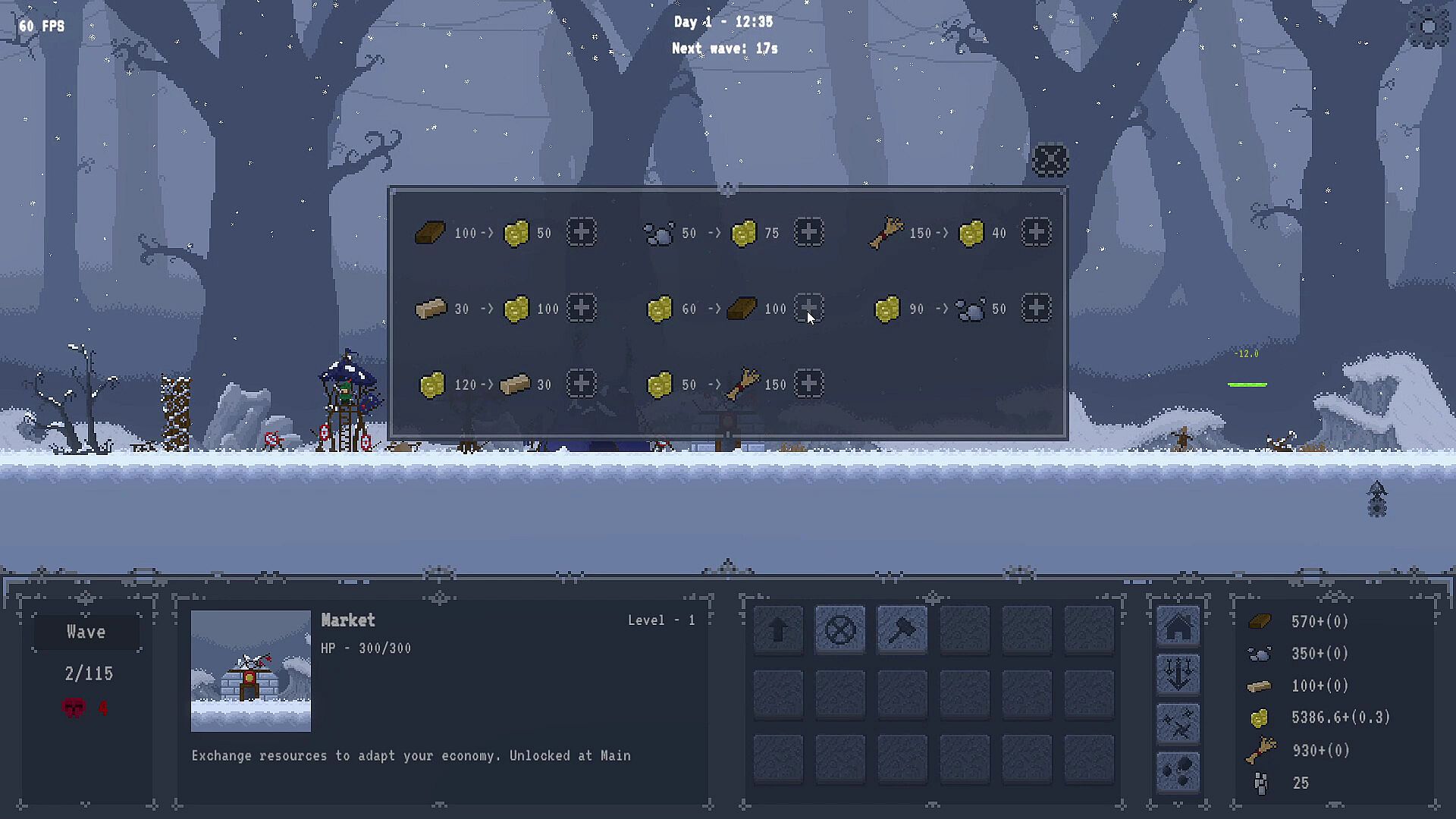 • Trade resources at the market when needed