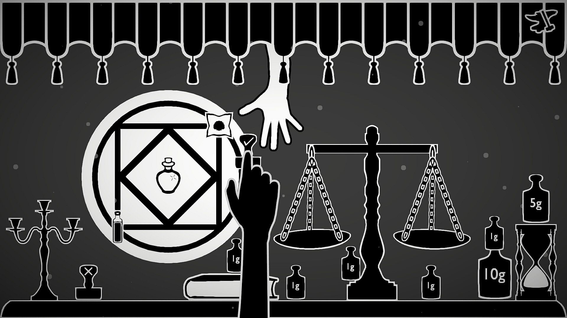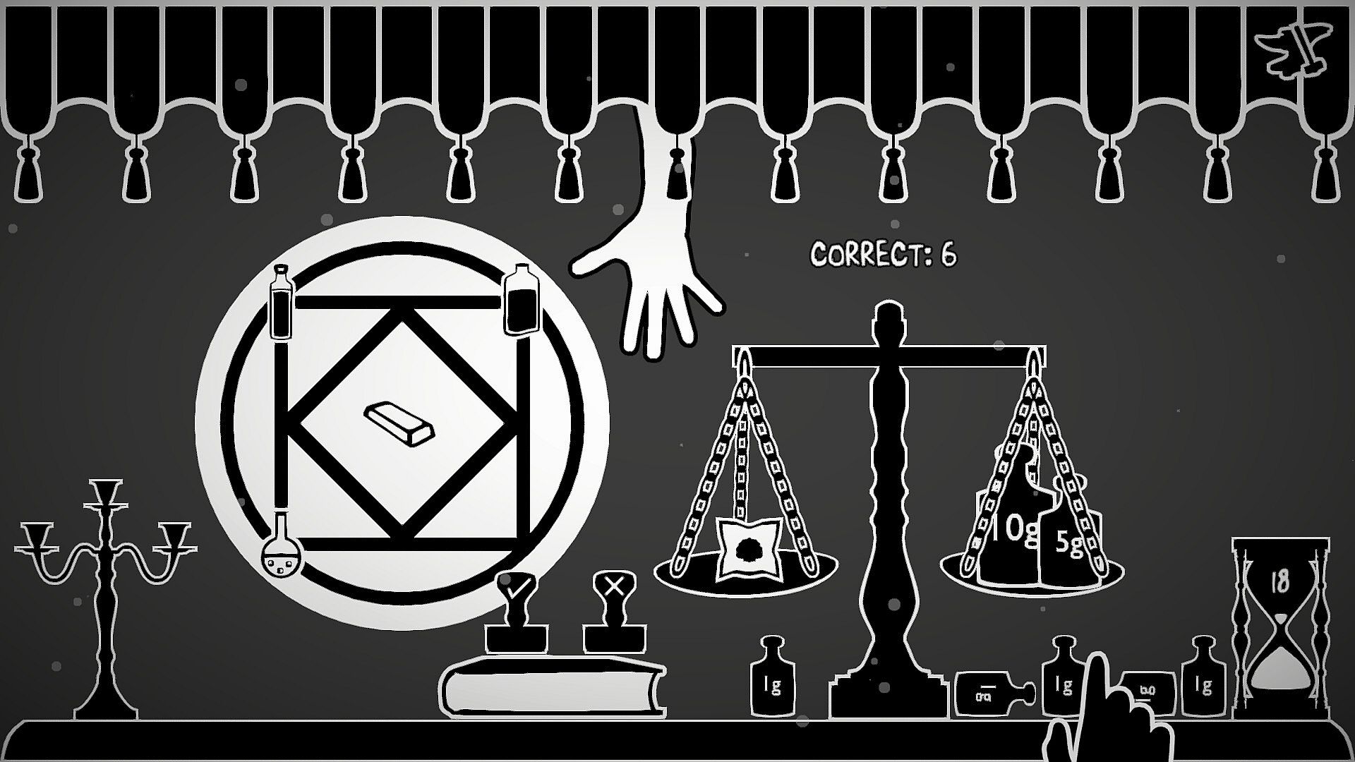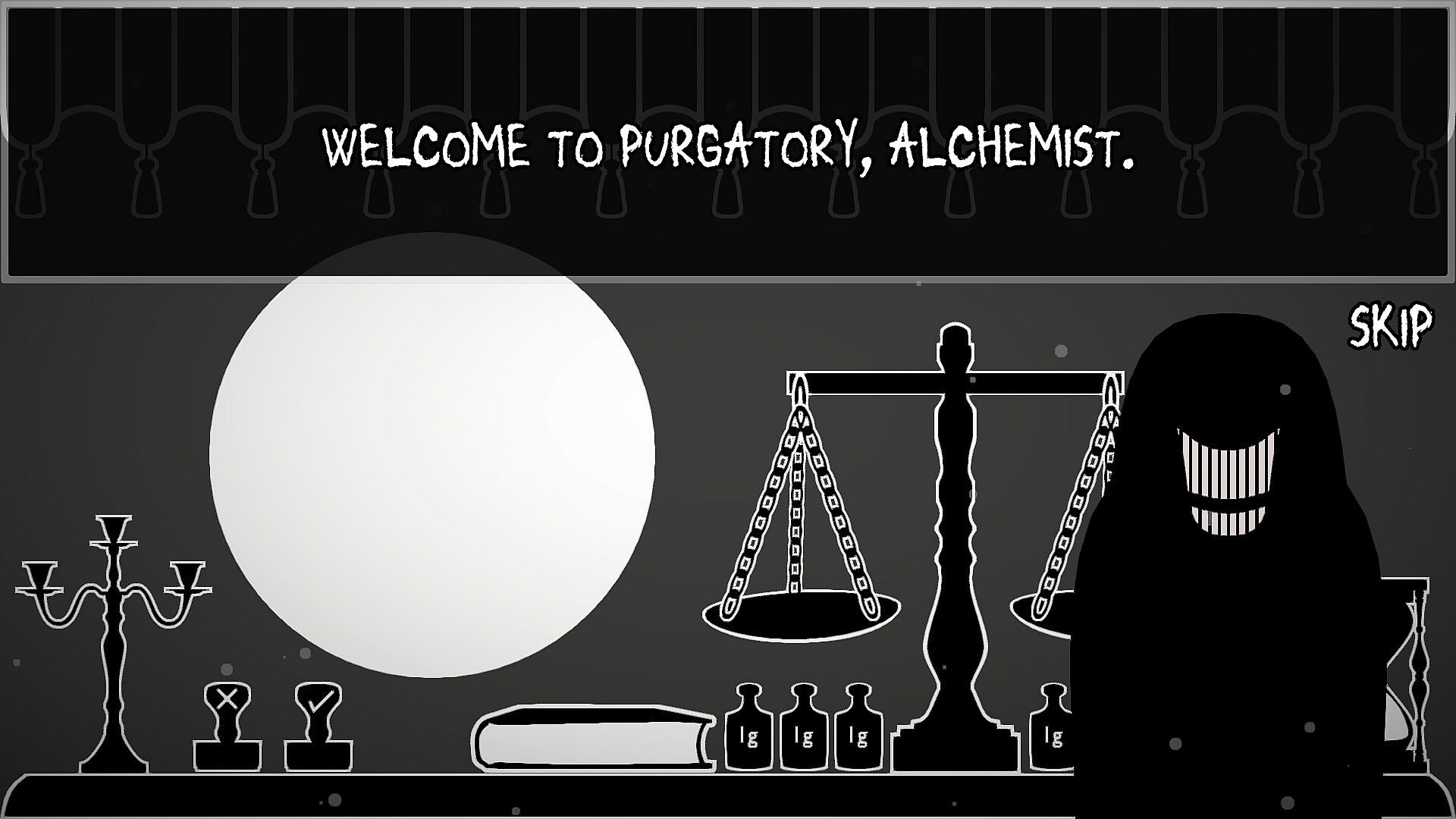 Behind the Curtain is a dark, atmospheric puzzle game where precision, logic, and quick thinking are the only means of escaping a fate worse than death. Under the watchful eye of an enigmatic Instructor, you must scrutinize alchemical recipes, verify ingredient weights, and ensure that every rule of alchemy is followed with exactness. If all is in order you may allow the alchemist Behind The Curtain to succeed. If they fail, you condemn them to the same fate you must now endure.