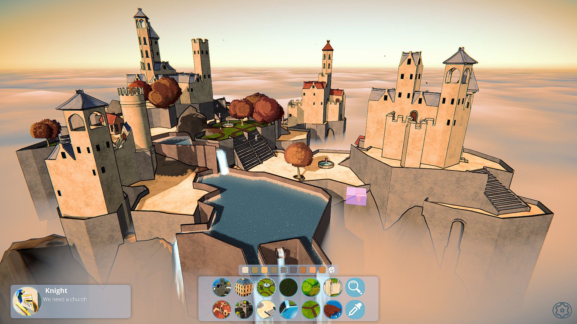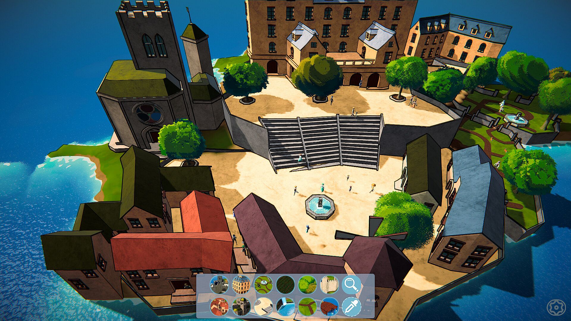 Complex yet intuitive grid-based building system allows you to combine different blocks to create anything you can imagine: parks and plazas, towers and town-centers.