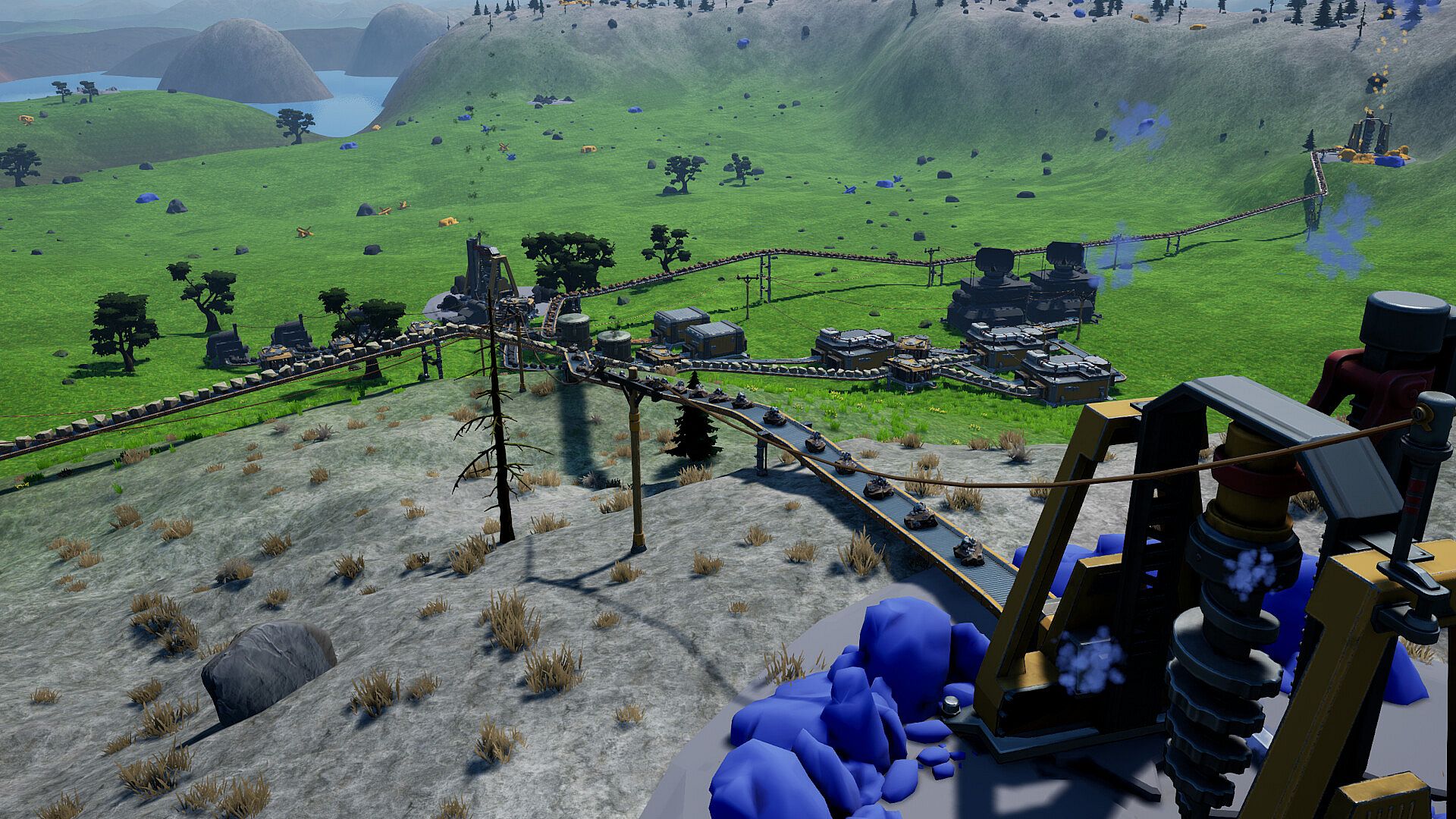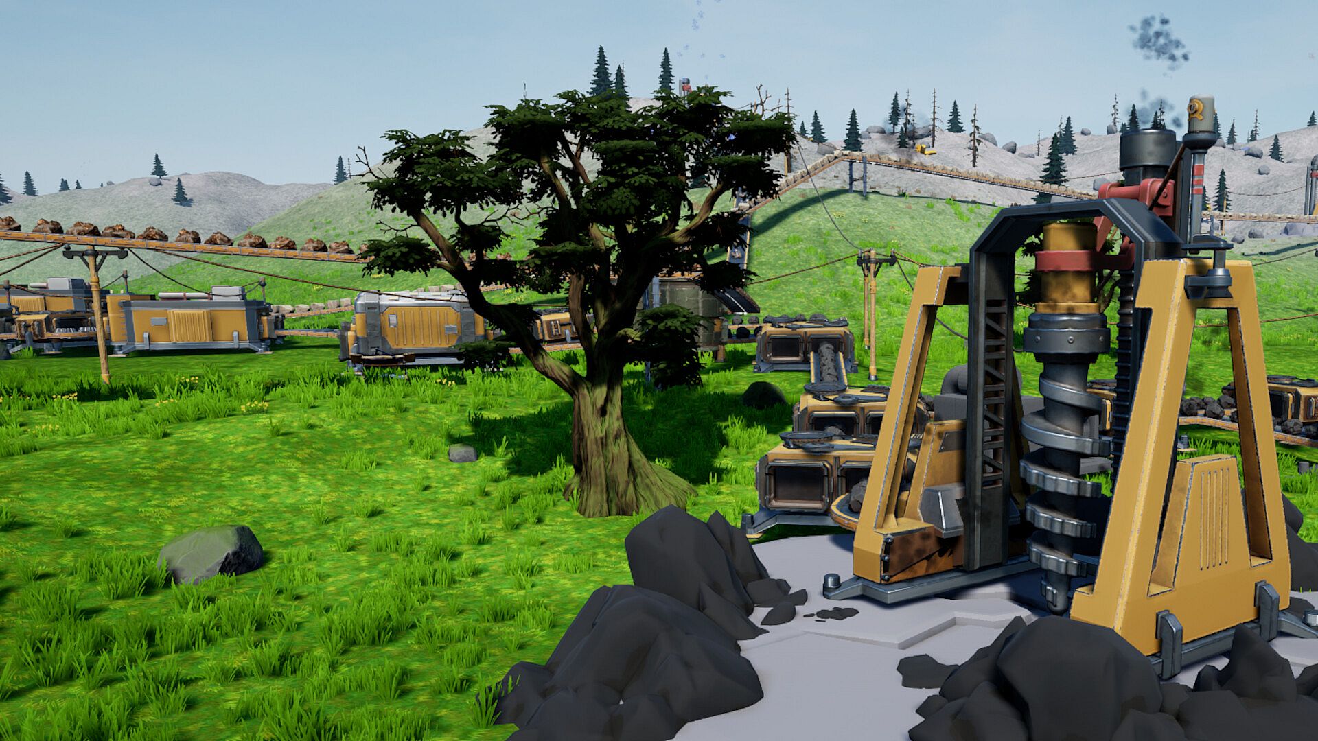 Build sprawling factories that stretch across the terrain, connected with miles of conveyor belts. Merge and split belts of items to optimize production lines and keep your factory running at peak efficiency. From simple smelters to complex oil refineries, every machine pushes your automation further as you expand your industrial empire!