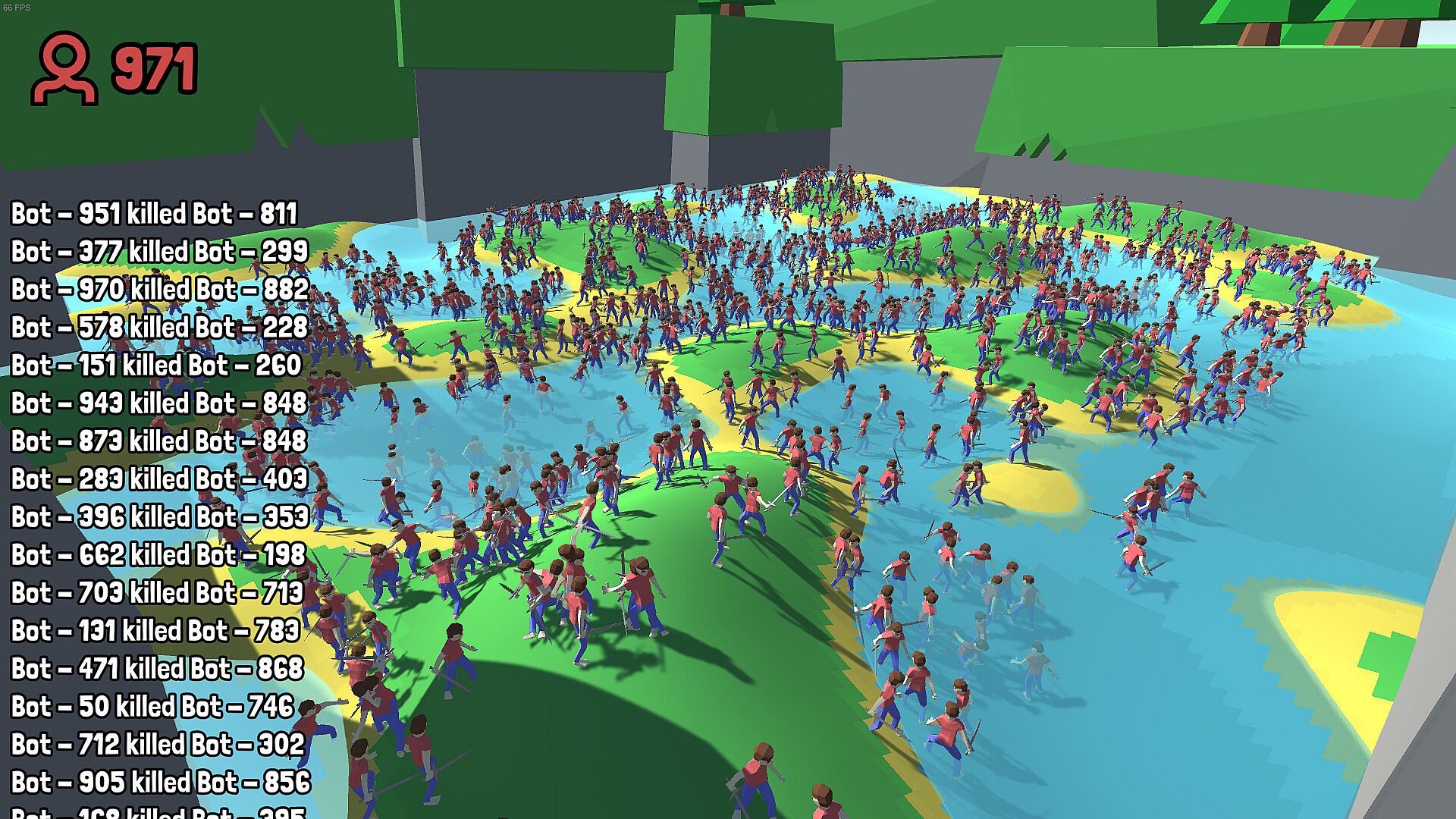 Add up to thousands of bots to clash for your own entertainment.