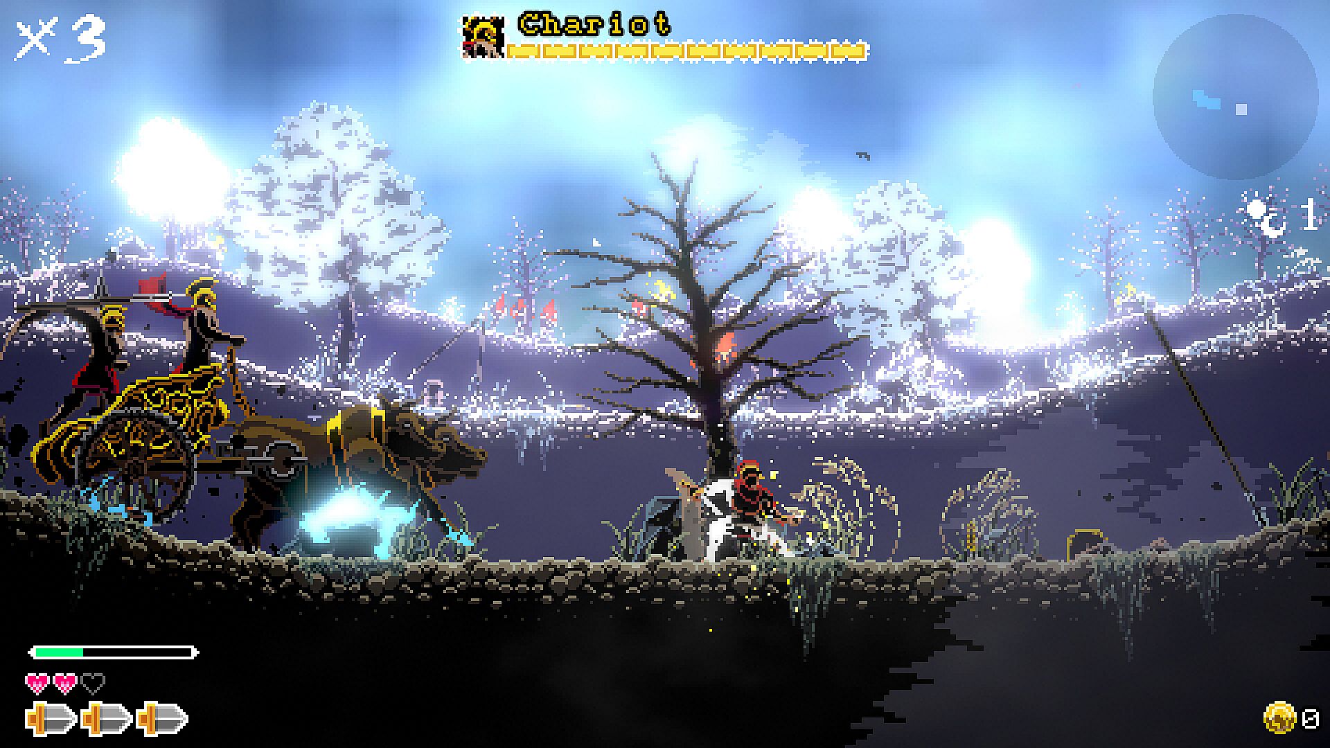 Face danger head-on as your only way to move is attacking to your left or right. Stronger foes await you in the later days of battle, so ensure to spend your gold with the nightly Peddlers to heal, purchase new weapons, obtain new relics, and survive to fight another day.