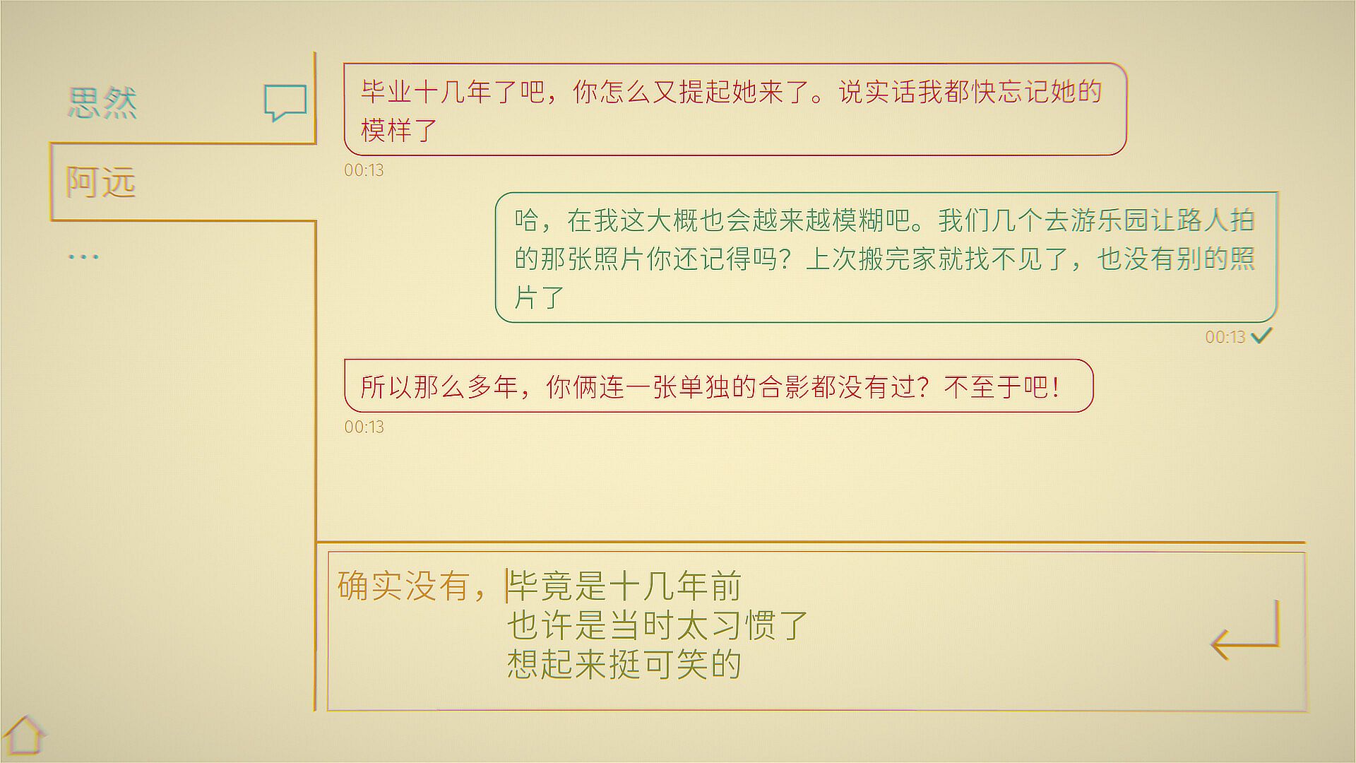 • Choose each reply piece by piece, and watch as your decisions quietly shape the story.