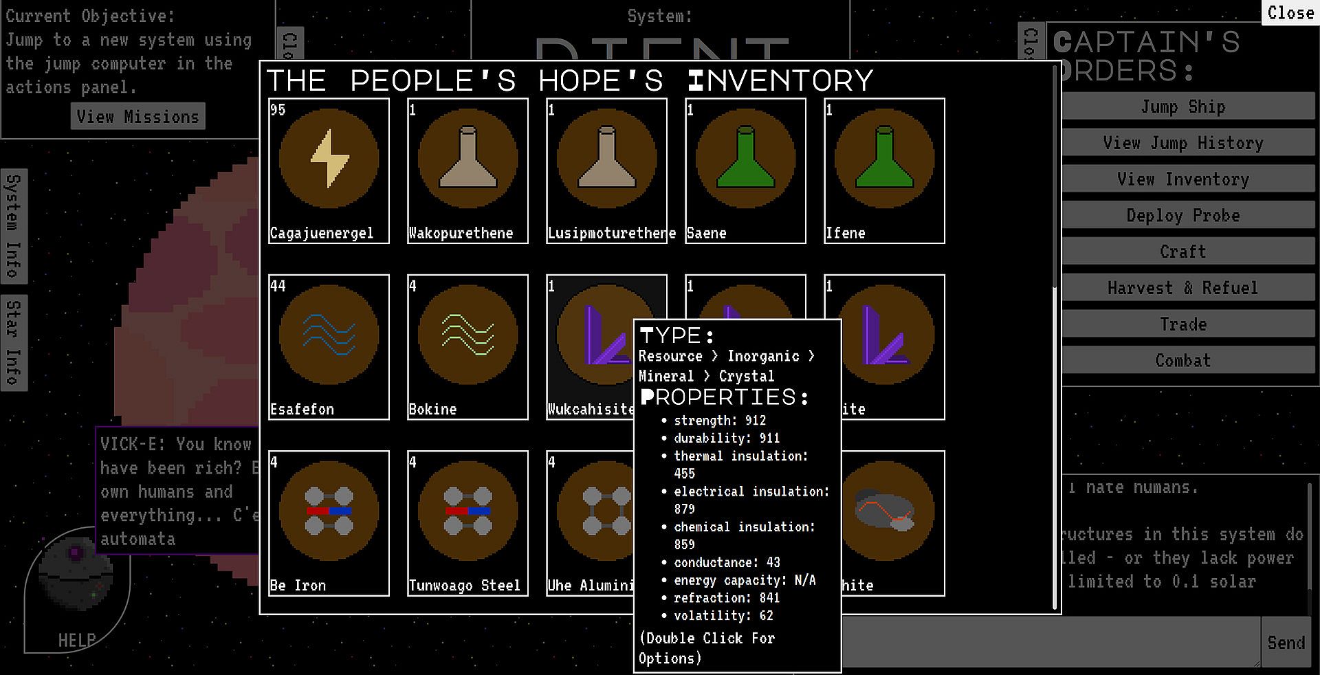 Craft better ship parts, such as engines, jump drives, power generators, and comms arrays - or use materials to build new bigger and better ships, or space stations. Need more resources? Build mining and harvesting platforms to harvest minerals in a system whilst you're offline or away exploring.