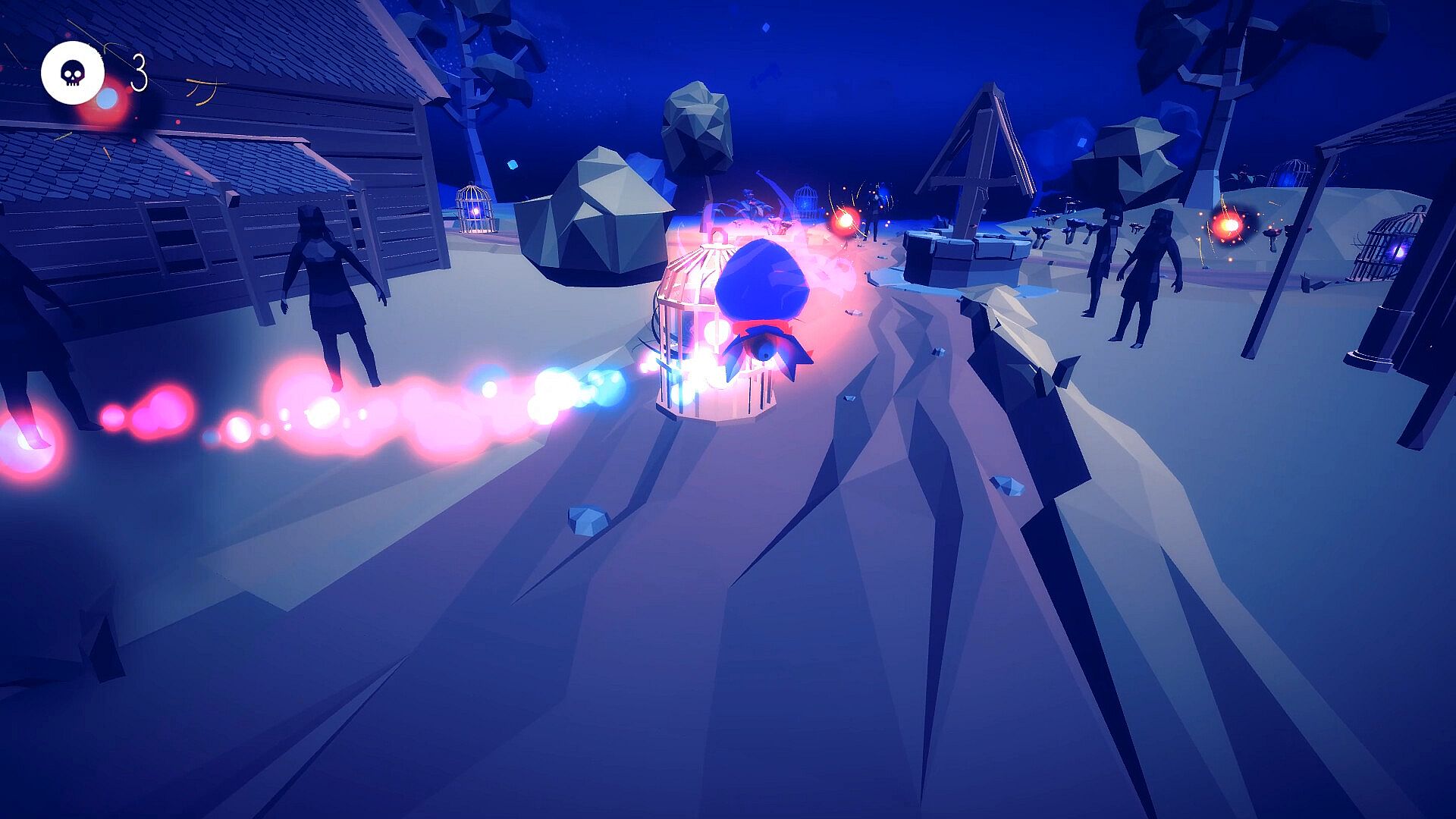Initially, you find yourself unable to open these cages, but your exploration soon leads you to discover soul energy scattered like spectral remnants throughout the environment. This energy is essential, granting you the power to shoot and break open the cages. With this newfound ability, you aim and shatter the cages, freeing the trapped souls within.