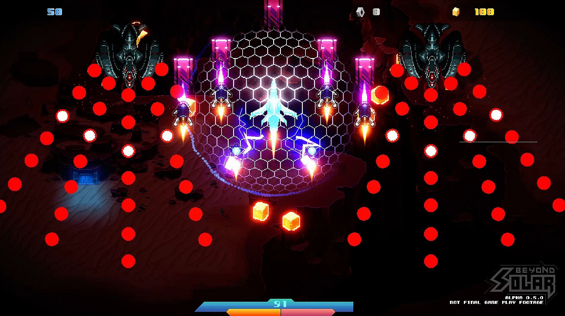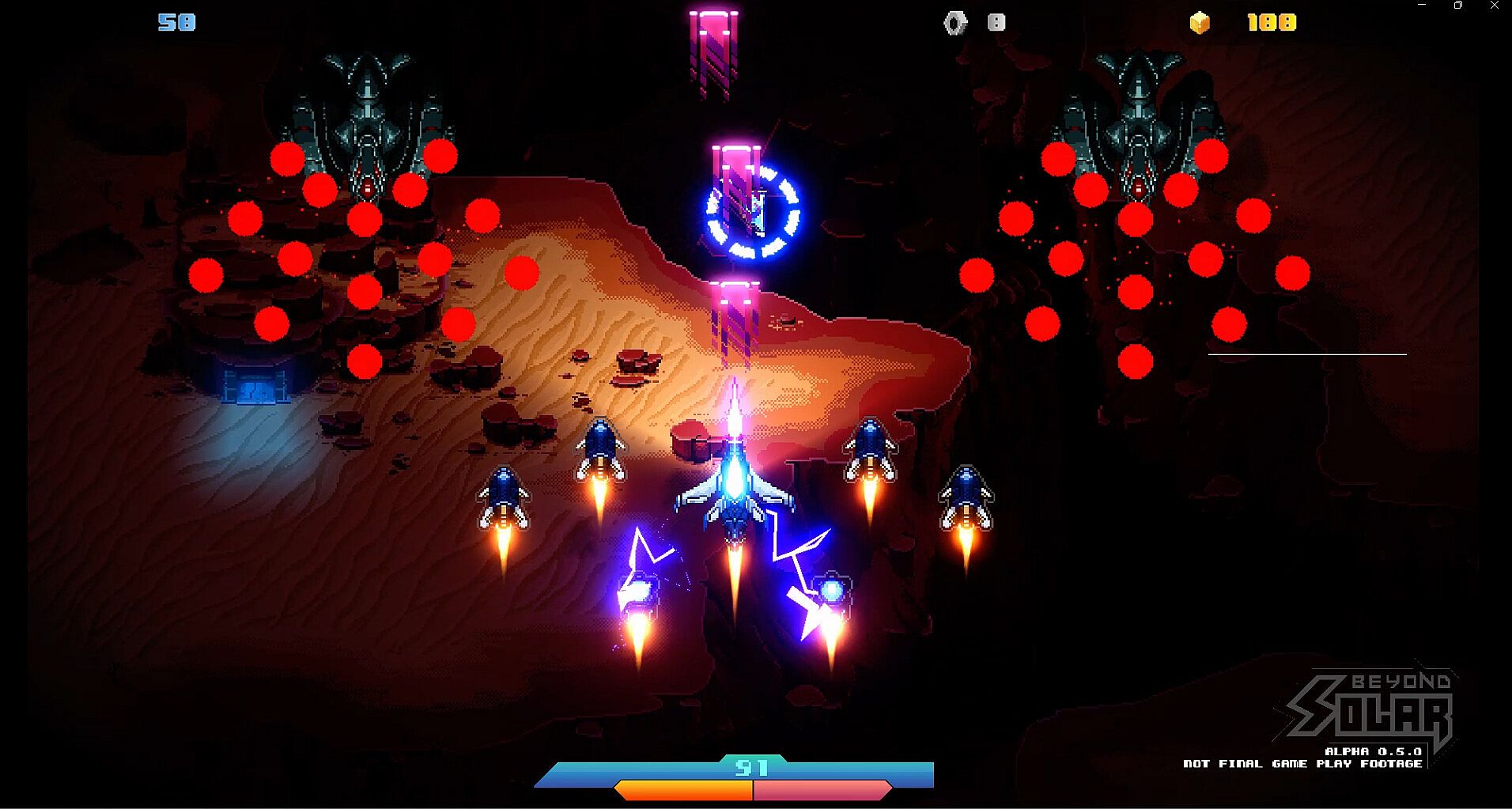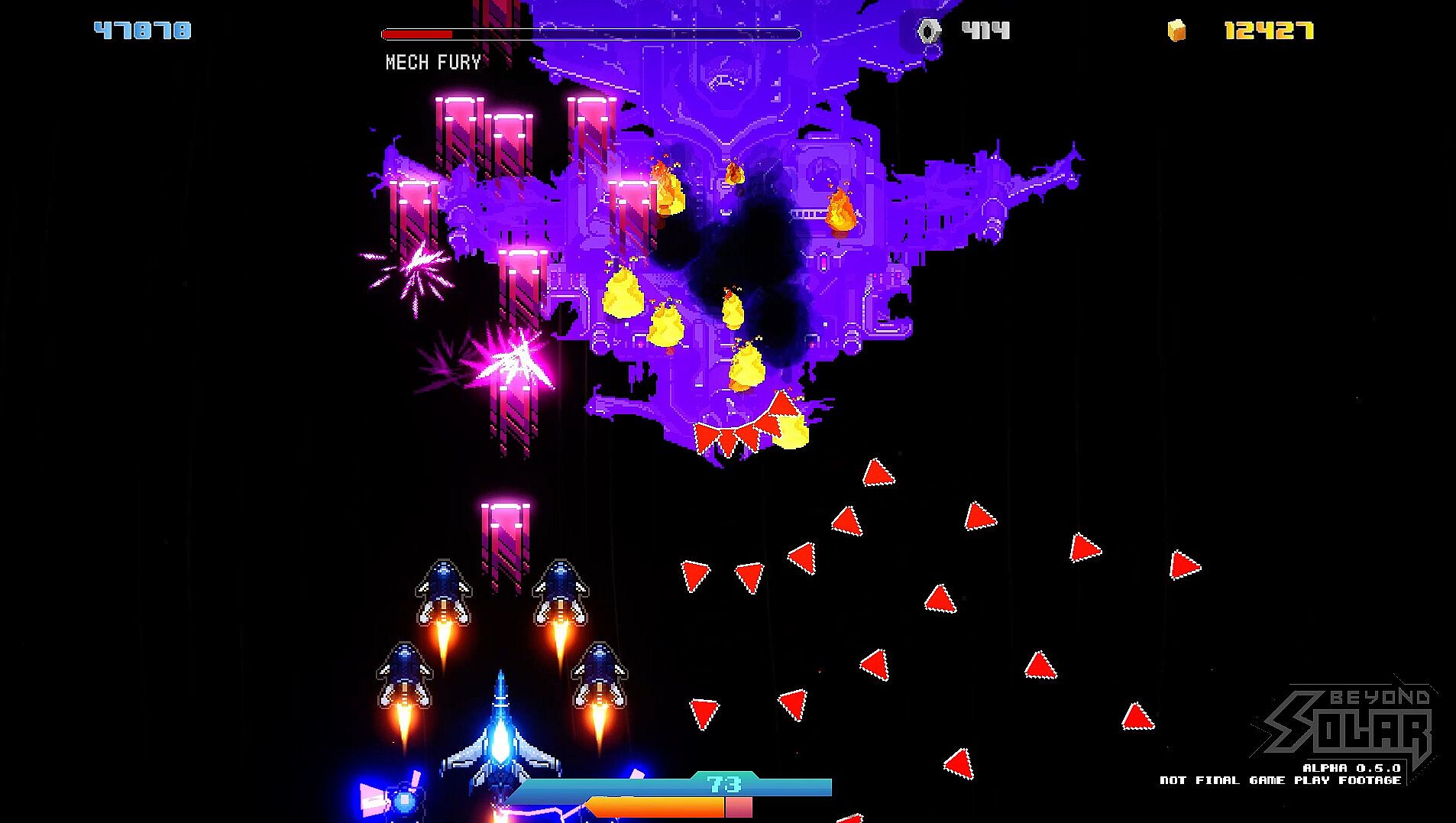 A bullet hell SHMUP with a branching narrative full of betrayal, sacrifice, and two possible endings. Earth is no longer safe. Humanity’s last fleet has ventured Beyond Solar, facing an onslaught of mechanical armadas and alien warlords determined to erase us from existence. Step into the cockpit of an advanced strike fighter and battle across hostile galaxies in a relentless bullet hell campaign.