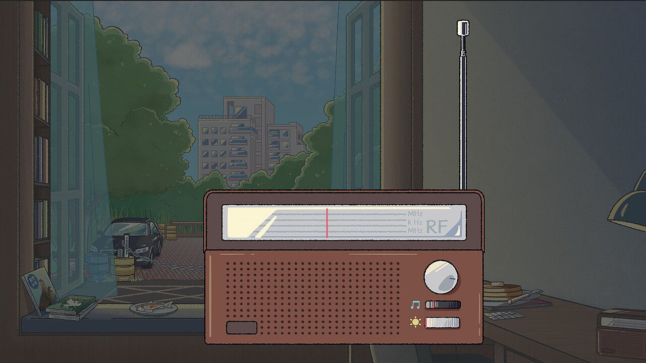 There's a music player in the room—tune into whichever station you prefer. The interface hides in subtle places, keeping buttons minimal and immersion high.