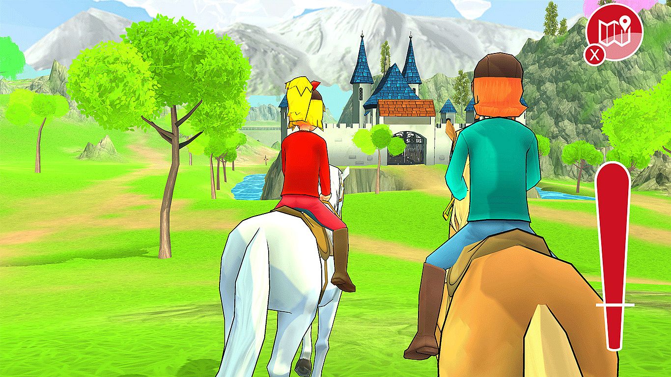 There's going to be a horse race at Castle Falkenstein. Of course Bibi and Tina have set their minds on taking part in that race. But are their riding skills going to be good enough to be a match for the competition? Help Bibi and Tina training for the big derby. Explore the beautiful surroundings of Martinshof and Castle Falkenstein riding over hedge and ditch with Bibi or Tina. Master various riding challenges and time trials or play one of the numerous missions. Cross country training will see you riding on demanding tracks to improve your jumping technique along with your other riding skills.