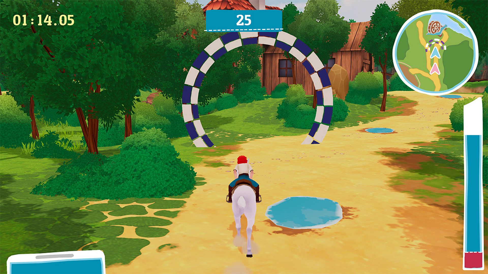 A violent storm has hit the area near Martinshof. Mount up and see what damage the storm has done. Ride across the fields, jump over numerous obstacles and have Bibi the witch magic away the mess. But most of all, you can have lots of fun in fast-paced horse races, show off your jumping and slalom riding skills, take loving care of the horses and send photos to your worried friend Naomi in Australia.