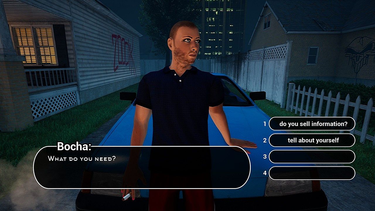 In the game "BIG DRUG" you have to wander through the streets of your city, hoping to find the lost drugs of the gang. As you progress, you will communicate with bandits where you will need to choose the right words and expressions so that you are not revealed as a rat.