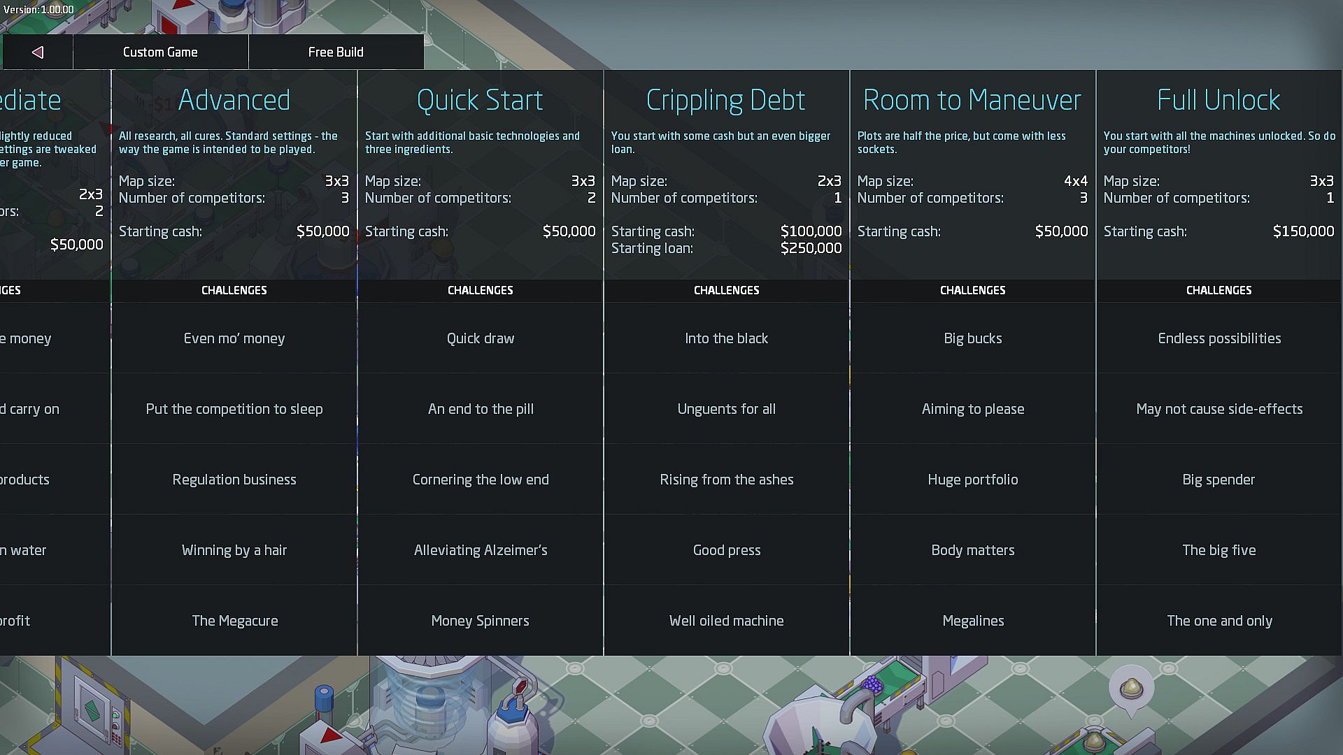 with a few rusty reconditioned machines, you can progress from knocking out cheap generic treatments for minor ailments, to discovering new active ingredients and hi-tech machines to help refine the next generation of world-changing drugs.