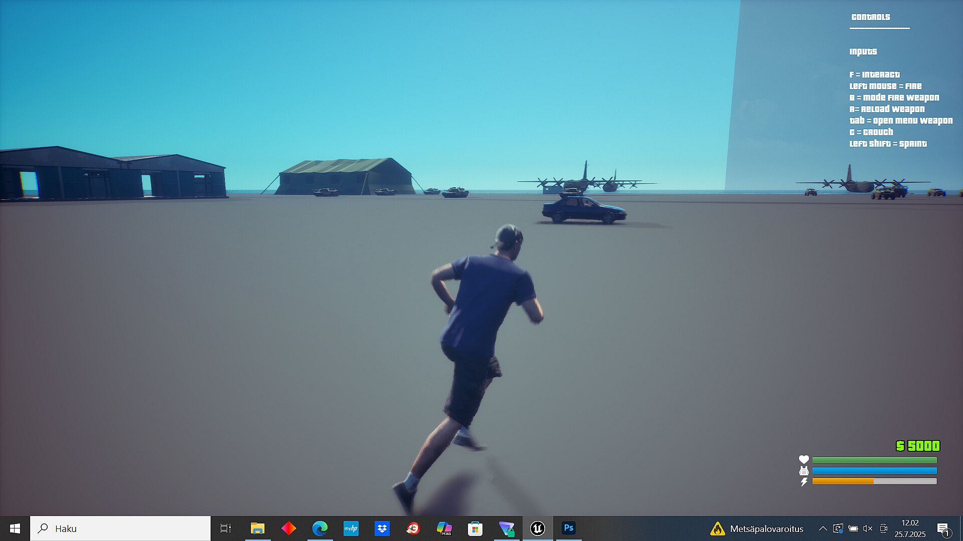 Terentius Duval is back in this open world gta parody game. Third person shooter game in fictional place called Valkeala. Terentius main mission is find 10 money bags which gives steam achievements. Also he has 4000$ money in start and no single weapon, his first mission is to find weapon shop and buy weapons. Terentius can get more money from shooting npc guys in open world. Some npc has weapons and they shoot back. For collecting money Terentius can go to Valkeala car shop and buy different cars. There are cheap cars and expensive cars. Also there is car paint store. Terentius can also rob and steal cars.. So can you be the biggest gangsta collect all money bags and buy most fastest cars