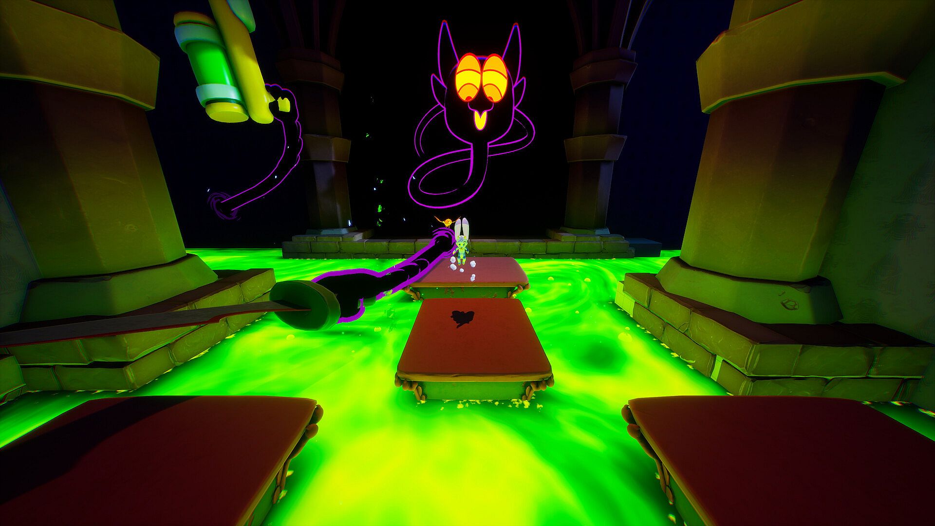 Billie Bust Up is a captivating 3D platformer that blends music, magic, and adventure in a world inspired by your favorite animated classics. Join Billie, a daring young goat, on a quest to uncover her father’s legacy and reclaim a powerful magic. With her mystical axolotl mentor Aristotle and loyal pet fox Oscar, you'll explore vibrant, whimsical realms, face off against quirky, song-slinging villains, and master incredible magical abilities.