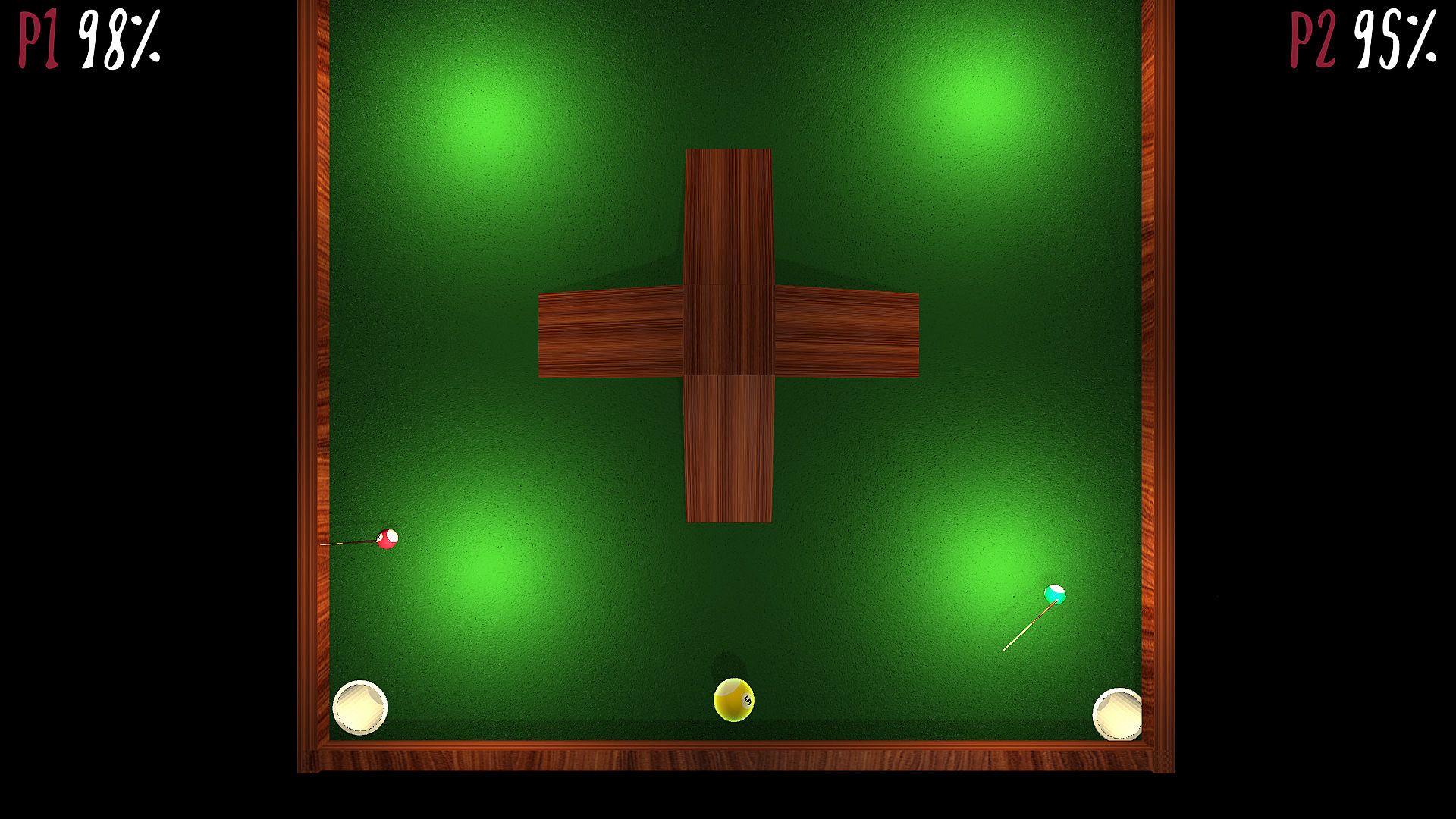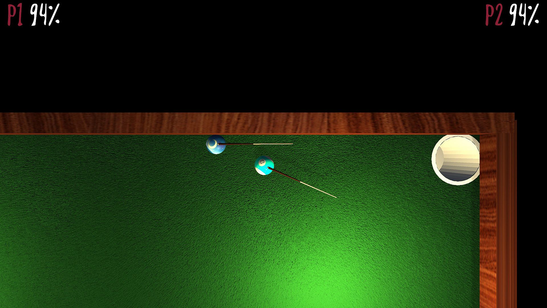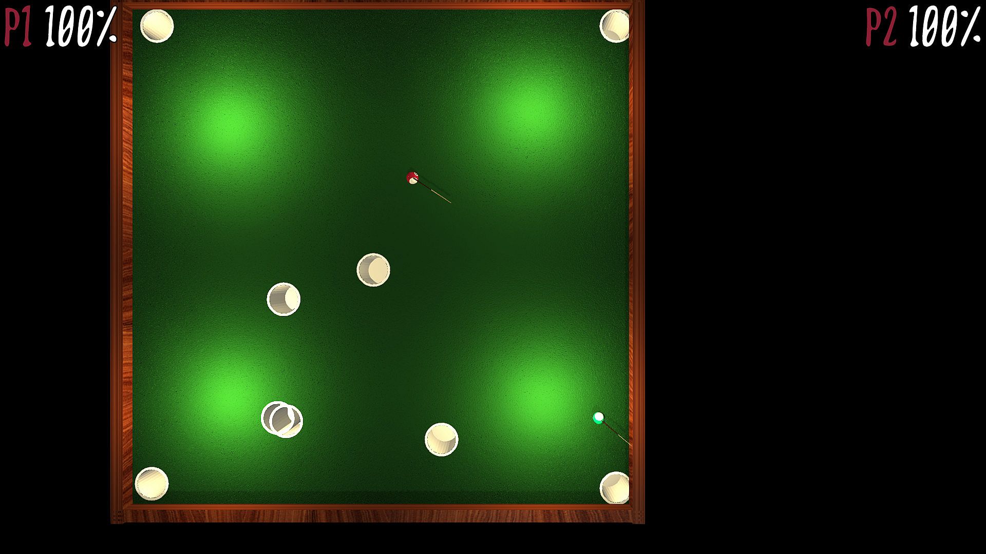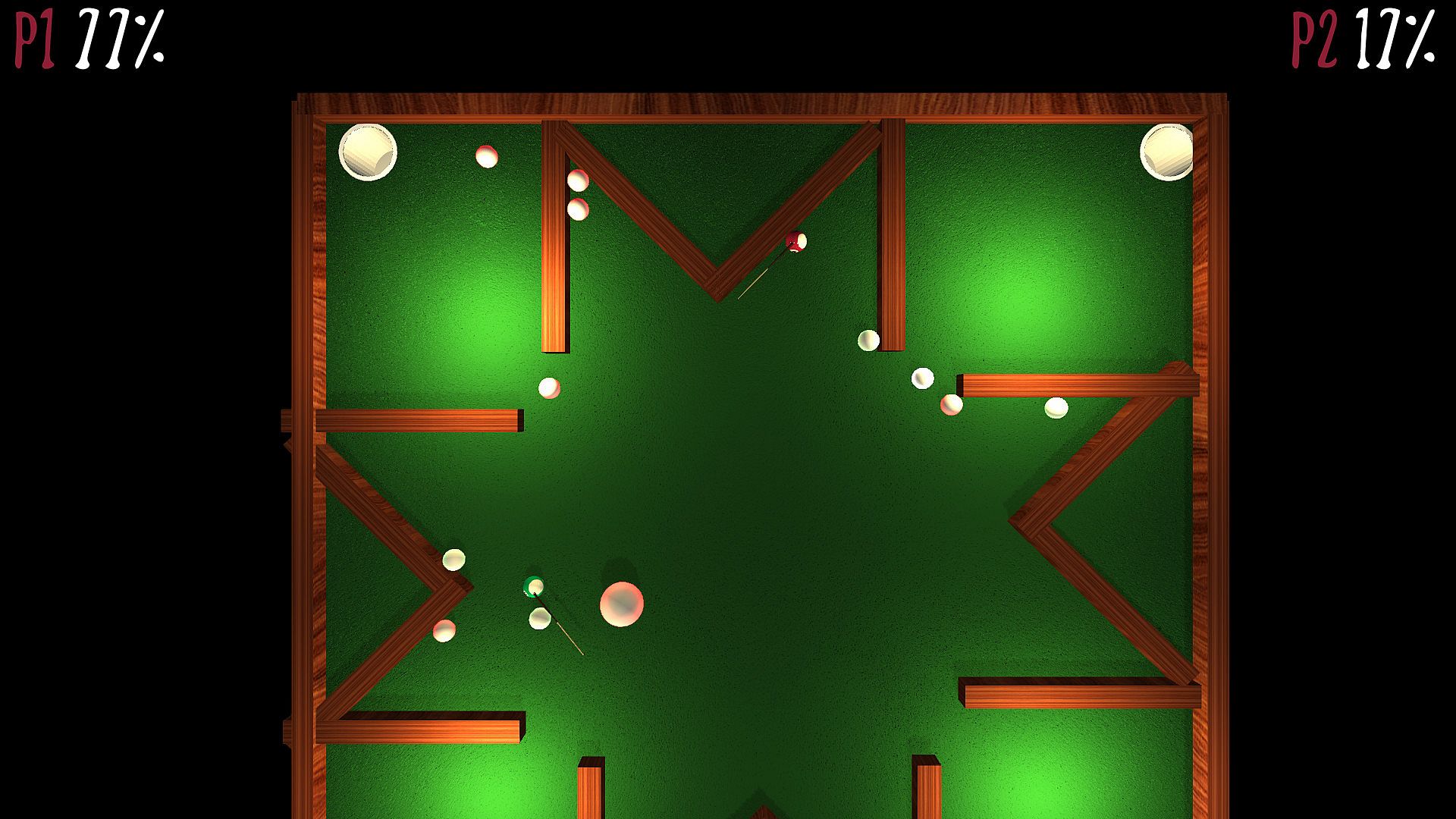 Players control their clunky billiard balls with a cue stuck on it's top. The only goal is to kill other players.