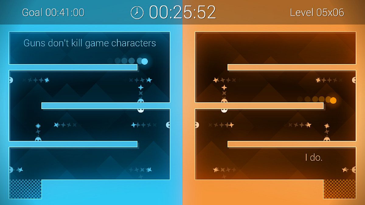 Test your skills and reflexes as you simultaneously guide two lovable(1) balls through over 100 controller-smashingly(2) tough platform challenges. Control both balls at exactly the same time as you try to avoid the death and danger that awaits their every move.