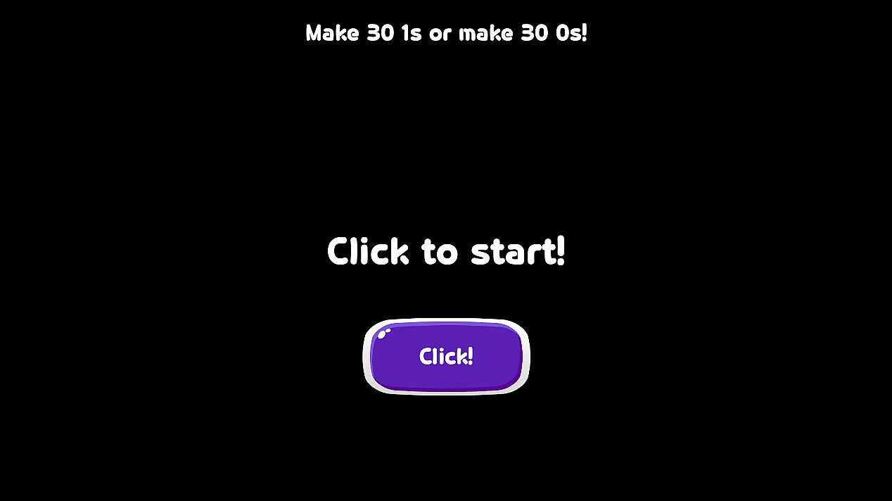This game is a simple probability game where the player generates a 30-digit binary number (composed of 0s and 1s) randomly, and wins if all digits are either 0 or 1.