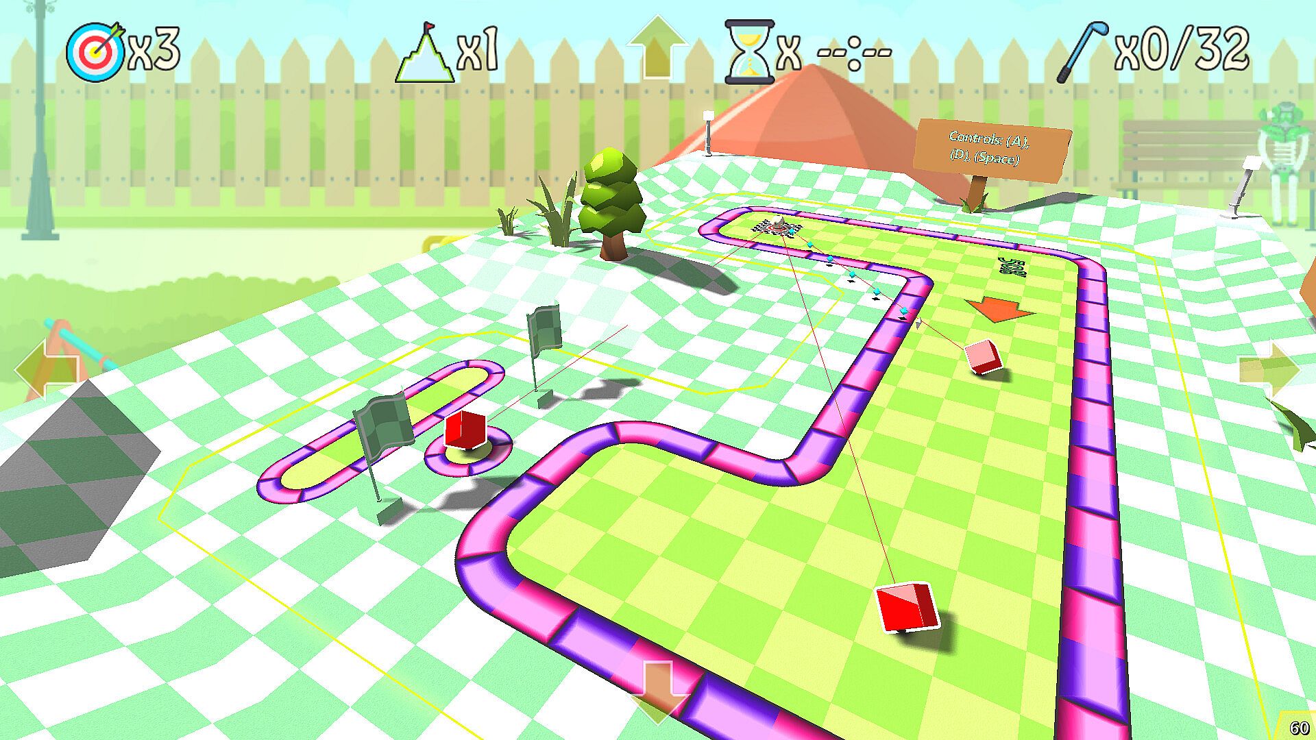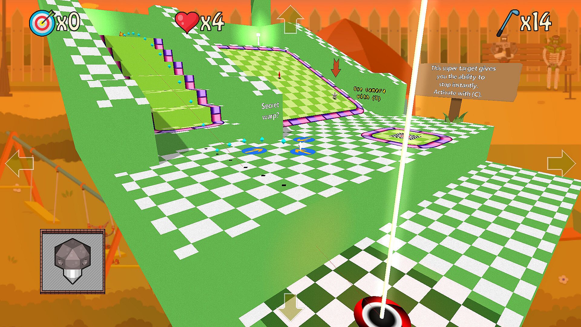 Welcome to Binary Golf, where traditional mini-golf collides with chaos! Navigate a series of targets, each granting unique abilities. Your goal is to eliminate targets with your golf ball until only the last one remains – and that final target becomes the cup!