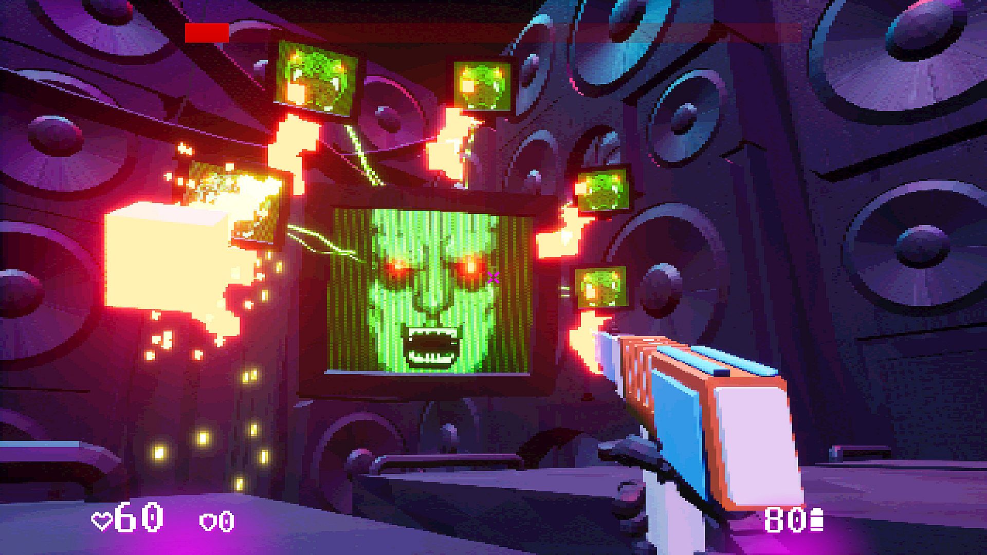 Enter a visually distinct world inspired by shooters of old blended with a gritty pixel styling reminiscent of old cutscenes.