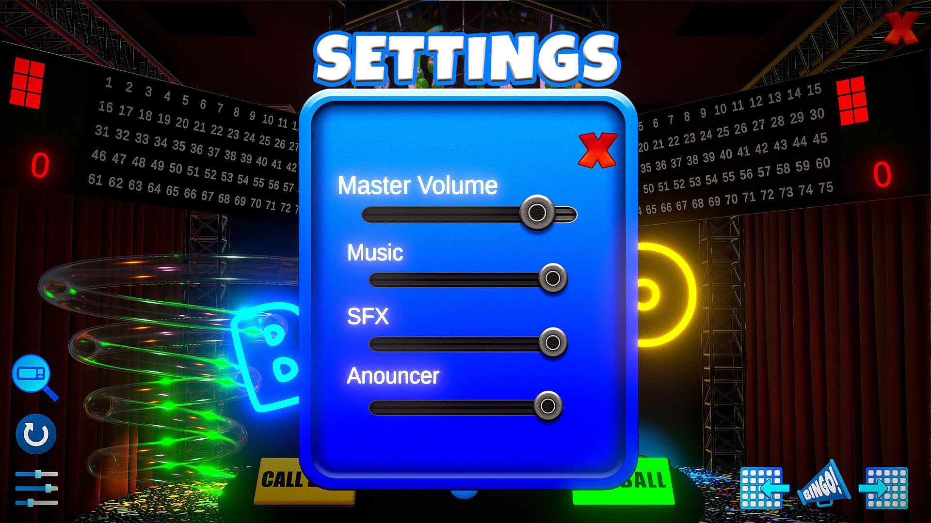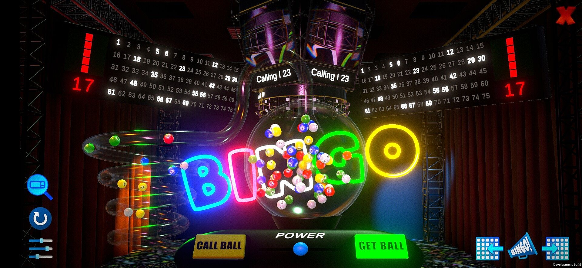 This game allows you to host a bingo game by using a physics based ball blower and and custom bingo patterns for a complete bingo session.