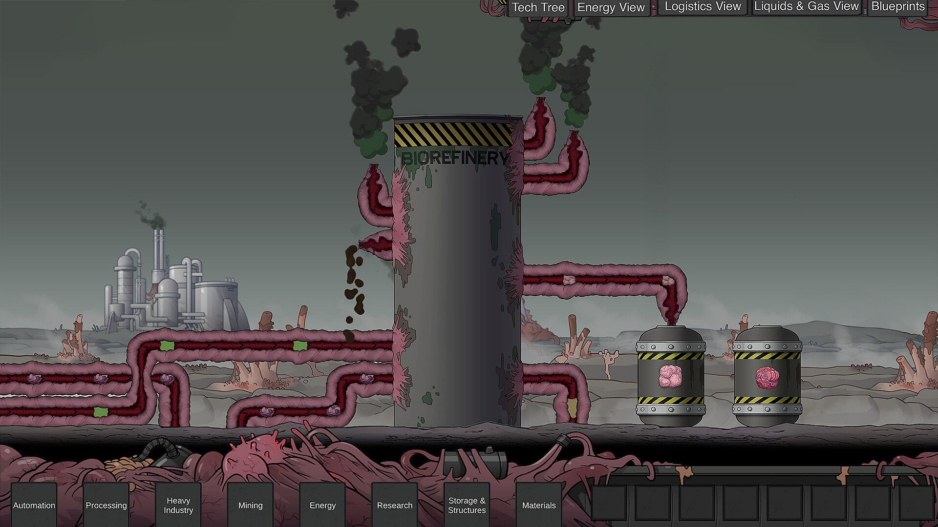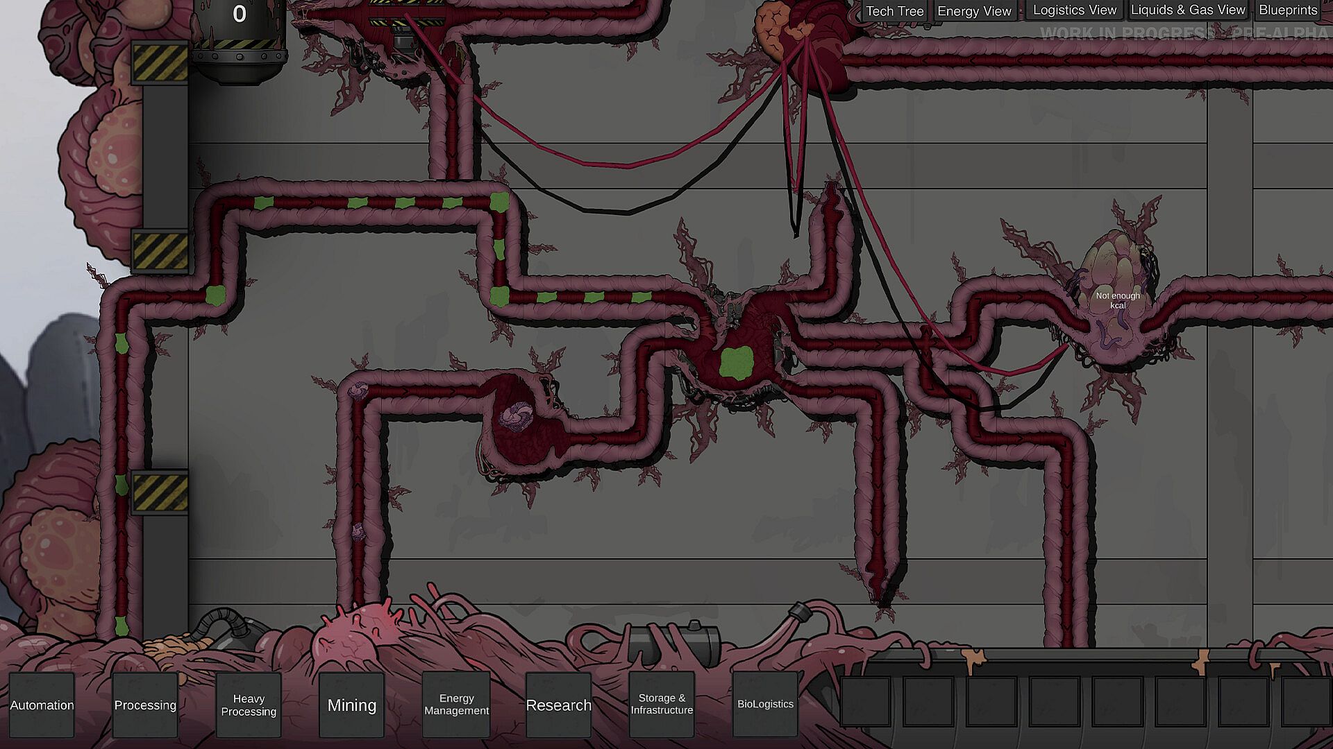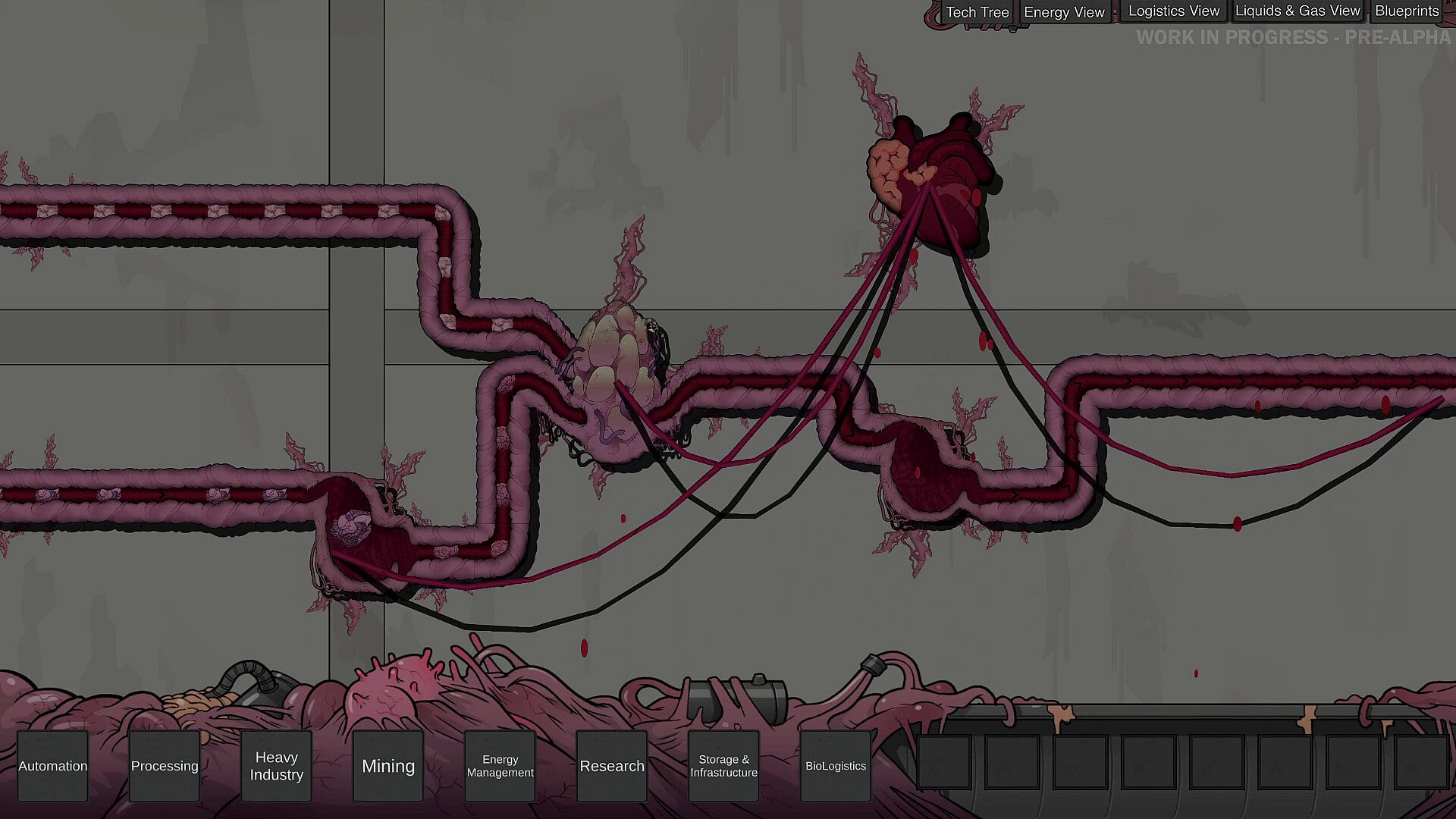 Mine and harvest pulsating biomass flesh to turn into usable organic matter for your factory. Grow and assemble new materials and fleshy biomachines. Feed your hive-mind brain to unlock new genetic technologies and new organs.