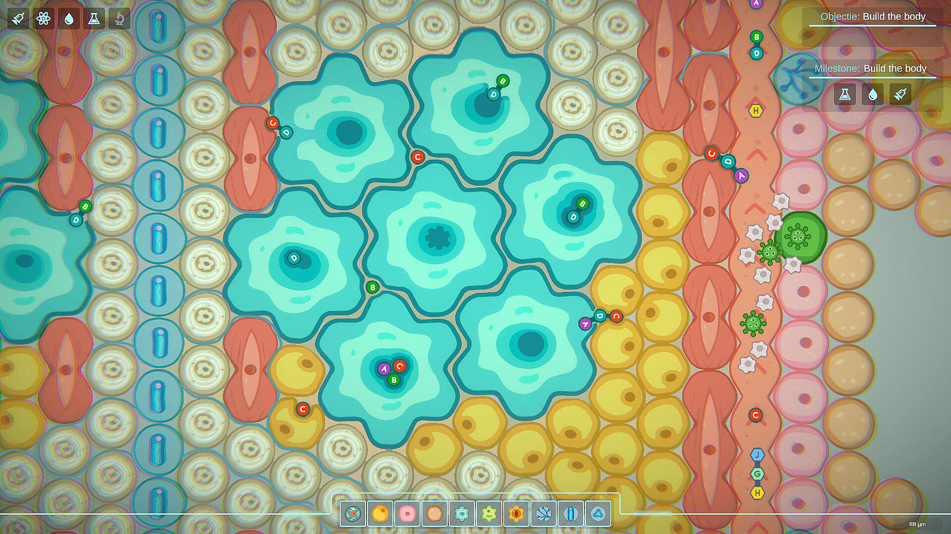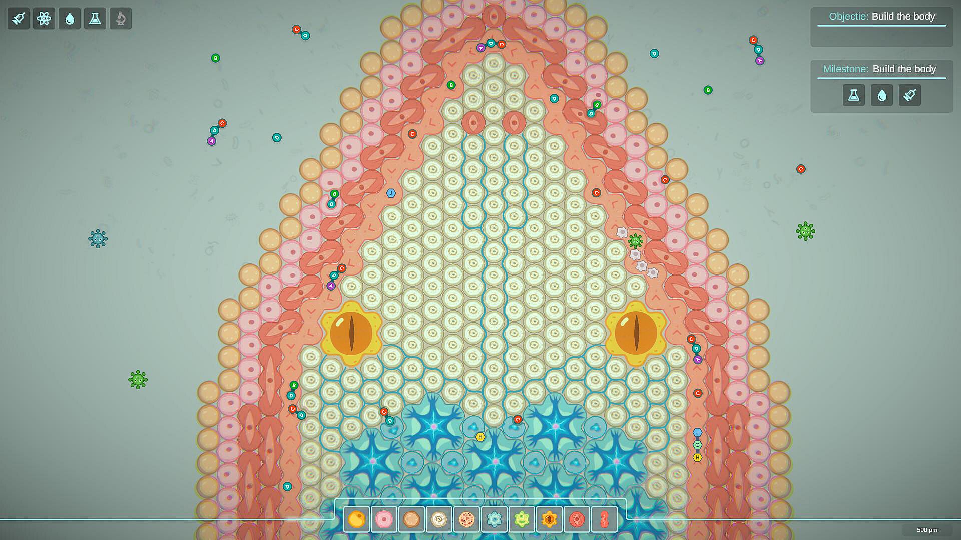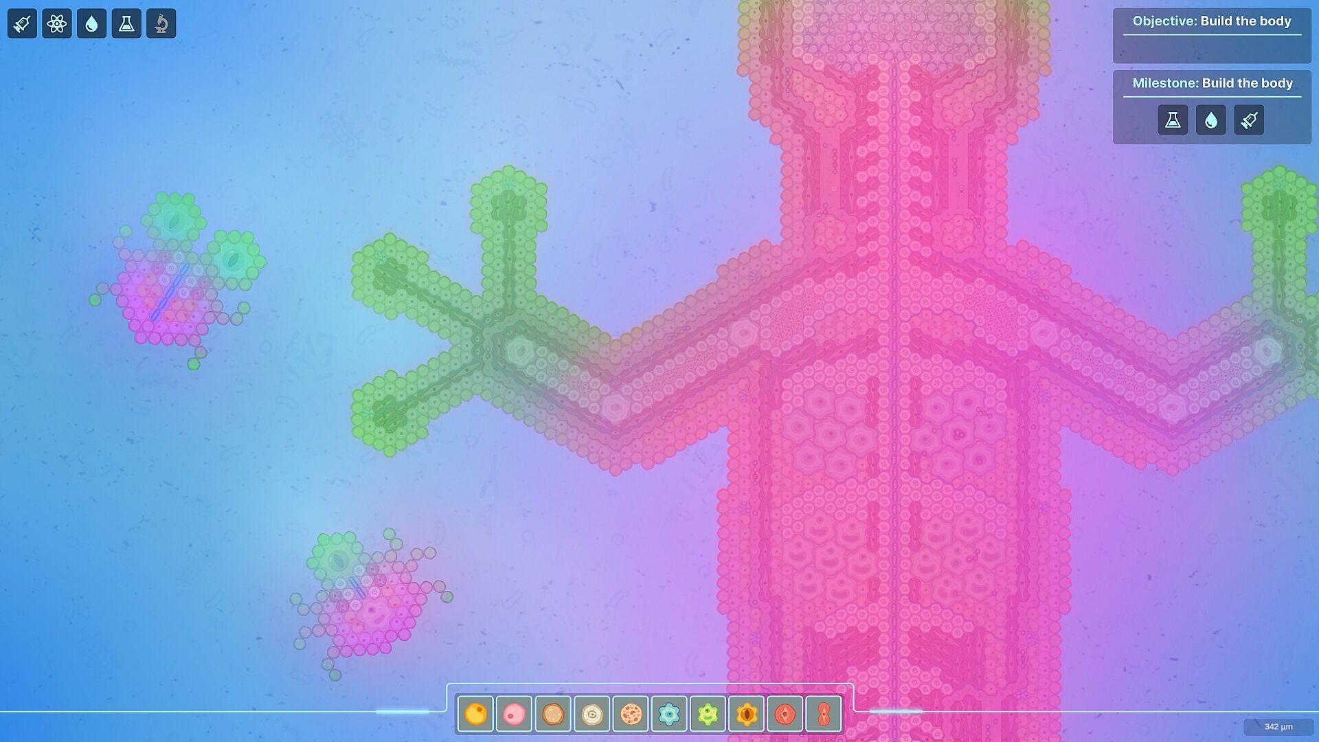 Create and combine different types of cells: muscle, skin, fat, bone, nerve, and more. Connect them into functional systems — respiratory, digestive, excretory, and so on. Your goal is to build a perfectly balanced organism capable of survival and development.