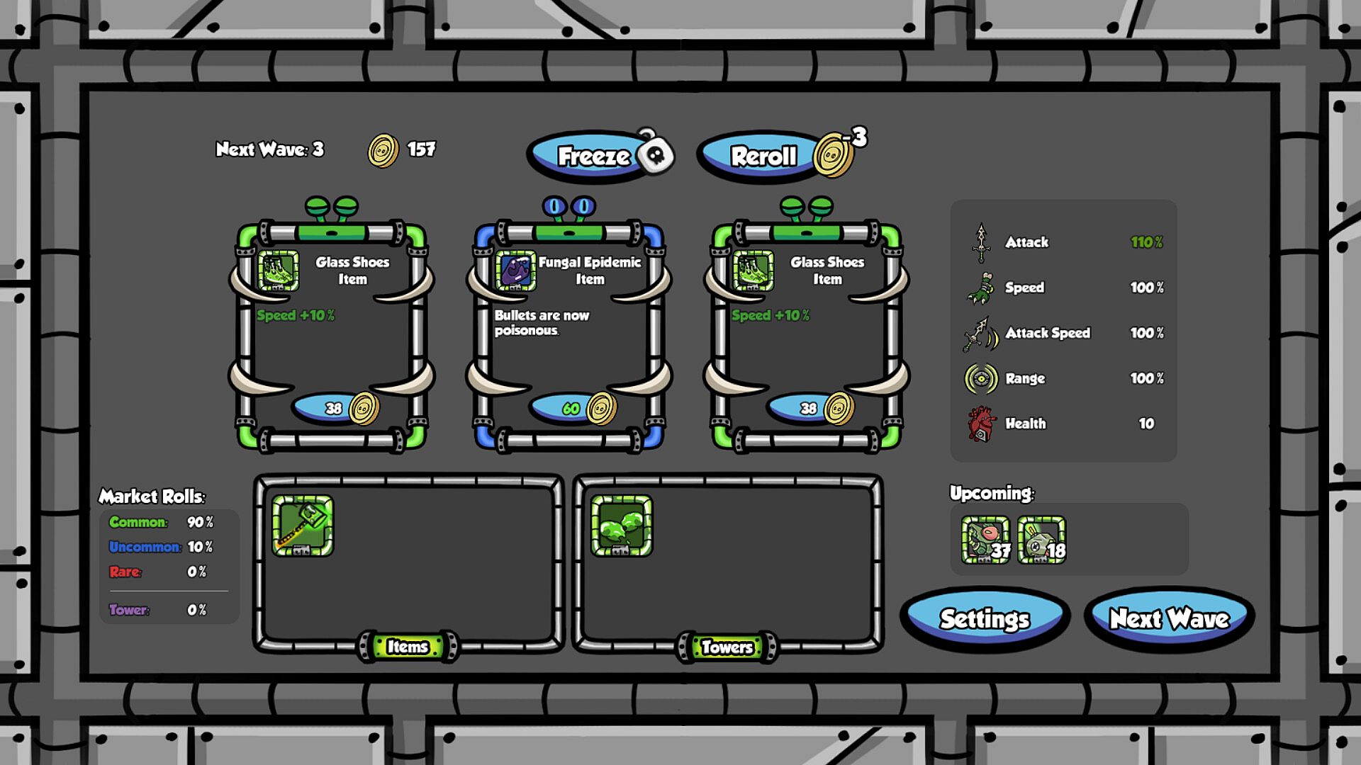 • Collect coins to buy skills or new towers from the shop between waves of enemies