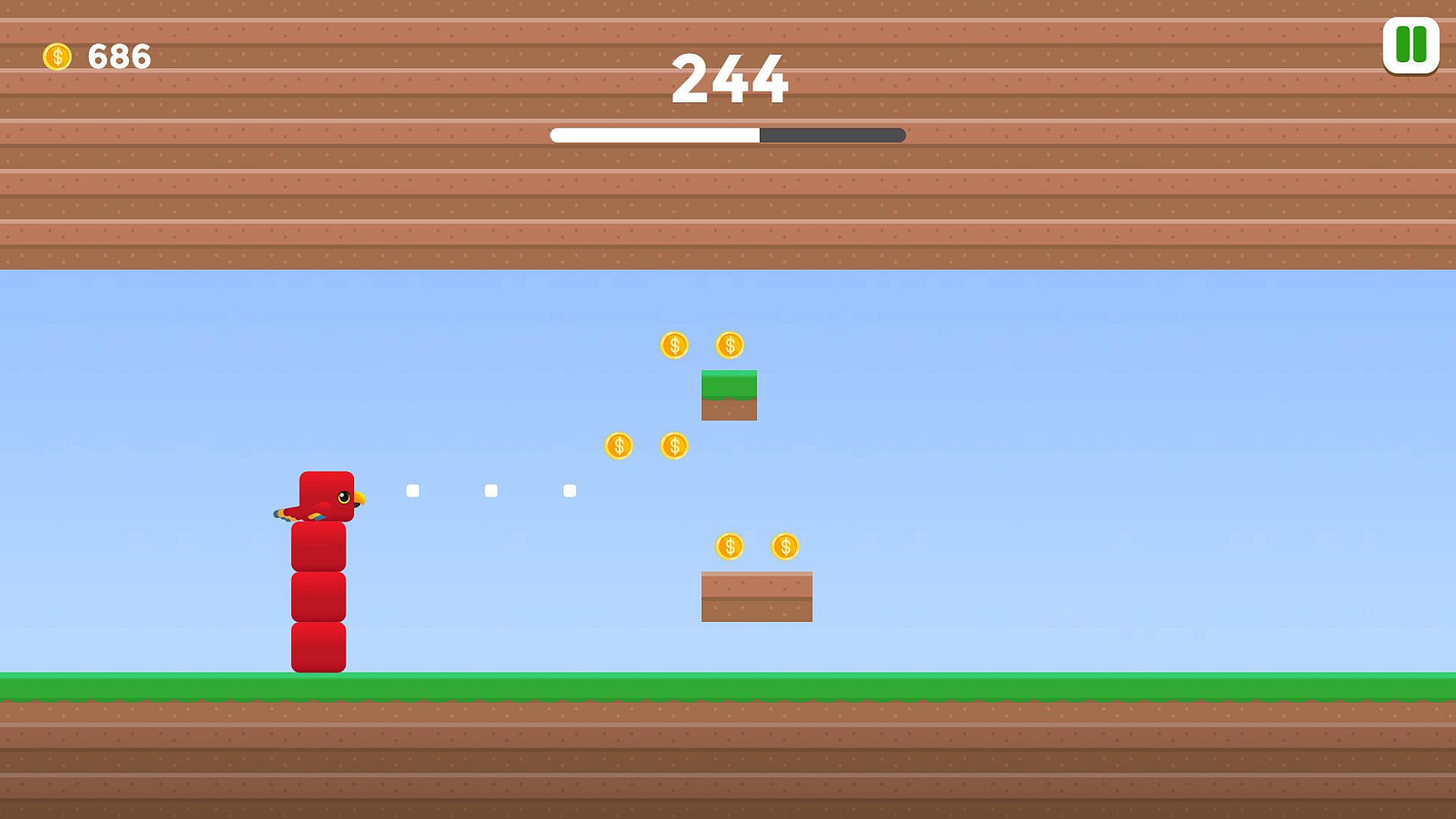 Tap to stack the square bird higher. Don’t bump into the ledge.