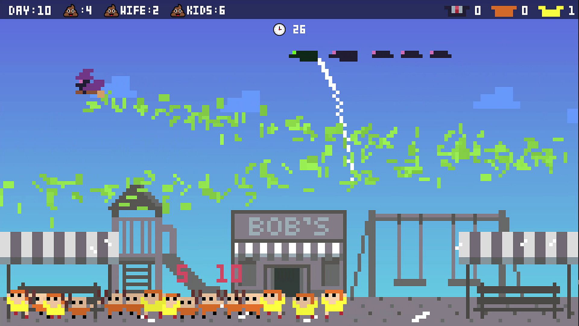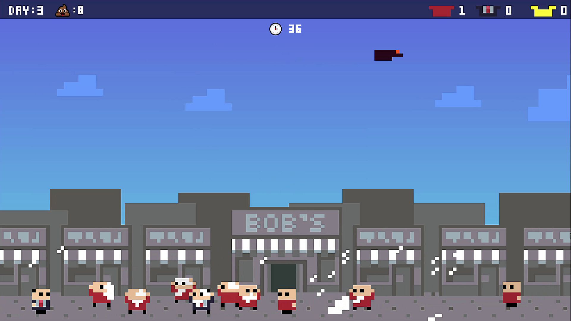 Soar across city streets, line up the perfect drop, and rain down bird poo on unsuspecting pedestrians as they panic, run, and look back in horror. Timing, positioning, and accuracy matter — miss your target and you’ll waste precious poo, but hit cleanly and rack up satisfying points.