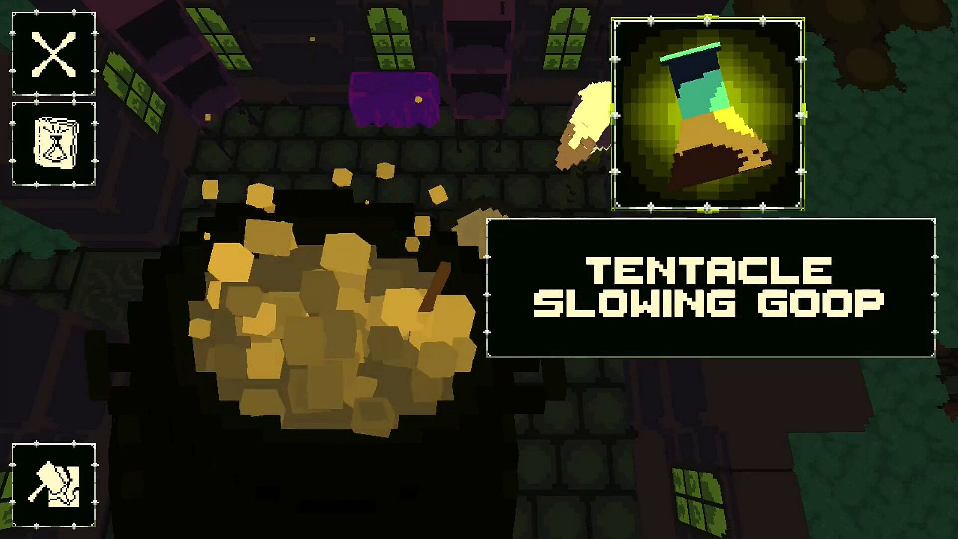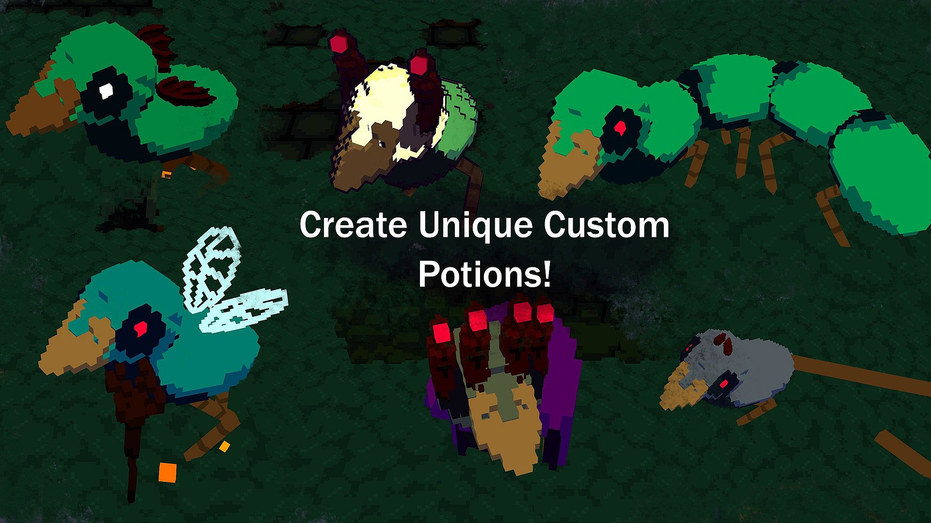Combine 27 unique potion effects using a colour mixing alchemy system. All effects have can be combined by matching their effect colours in the cauldron and mixing them all together! All potions drastically effect those who drink them!