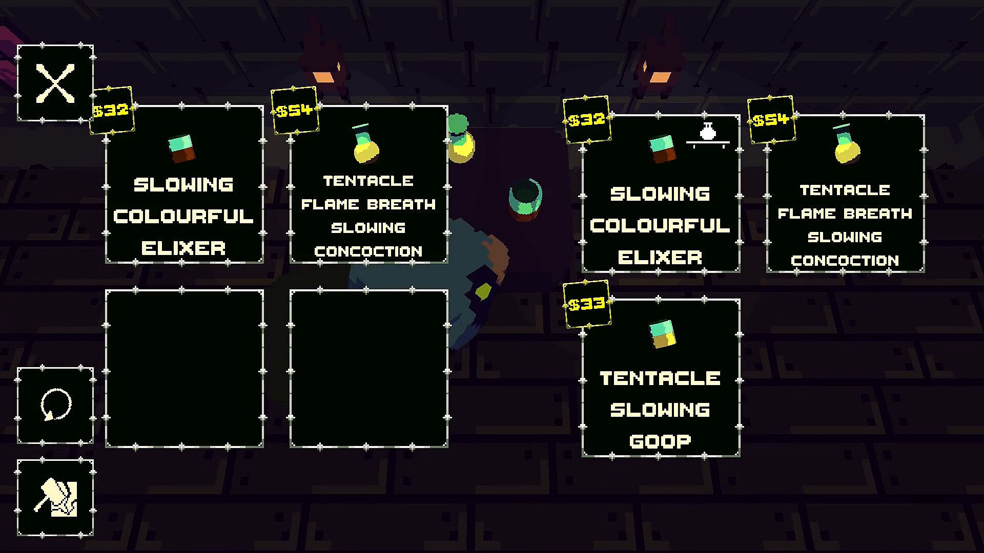 Solve NPCs unique problems, all NPCs have procedurally generated dialogue, so they'll always have something unique to say and unique problems to solve! It's up to you to figure out which potion would best help each NPC.