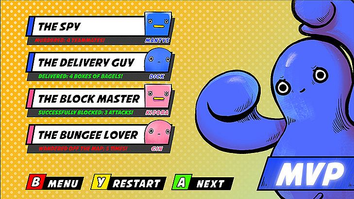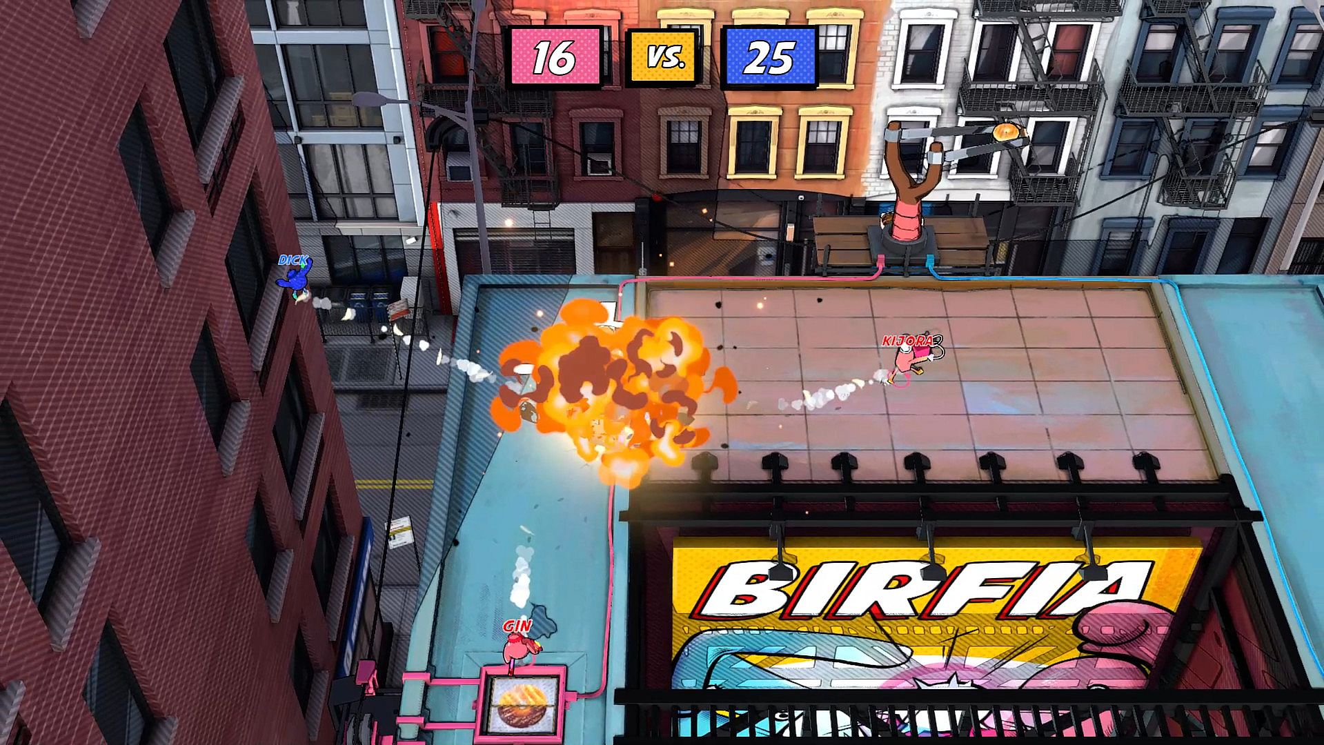 BIRFIA is a couch fighting game where you battle with friends as one of the wobbly birdies inside an unfinished comic book. On top of an old apartment in Brooklyn, NY, you are going to punch (/throw/bomb/...) your opponents off the arena in various creative and risky ways to ensure your team (or yourself) is among the top BIRFIAs!