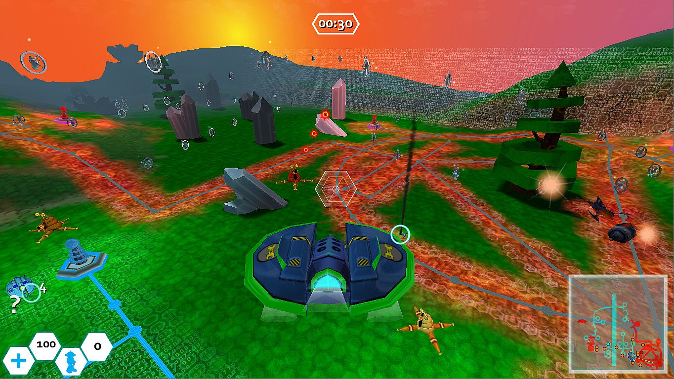 Bit Shifter is a 3D action/strategy game where you pilot the Scandisc, a Virus blasting hover ship that can pickup, place and heal robotic soldiers called Bits, your friend in arms against the Virus threatening your PC. You play the role of Flash Bios, a crack shot pilot, out to find his brother Rom lost on Mutation Day. It's your job to strategically deploy your Bits, and protect them while they clean up the Virus. Where will you put them? Choose wisely the Virus is relentless and will spread if left unattended. If it reaches the Data Stream it will corrupt the whole system!