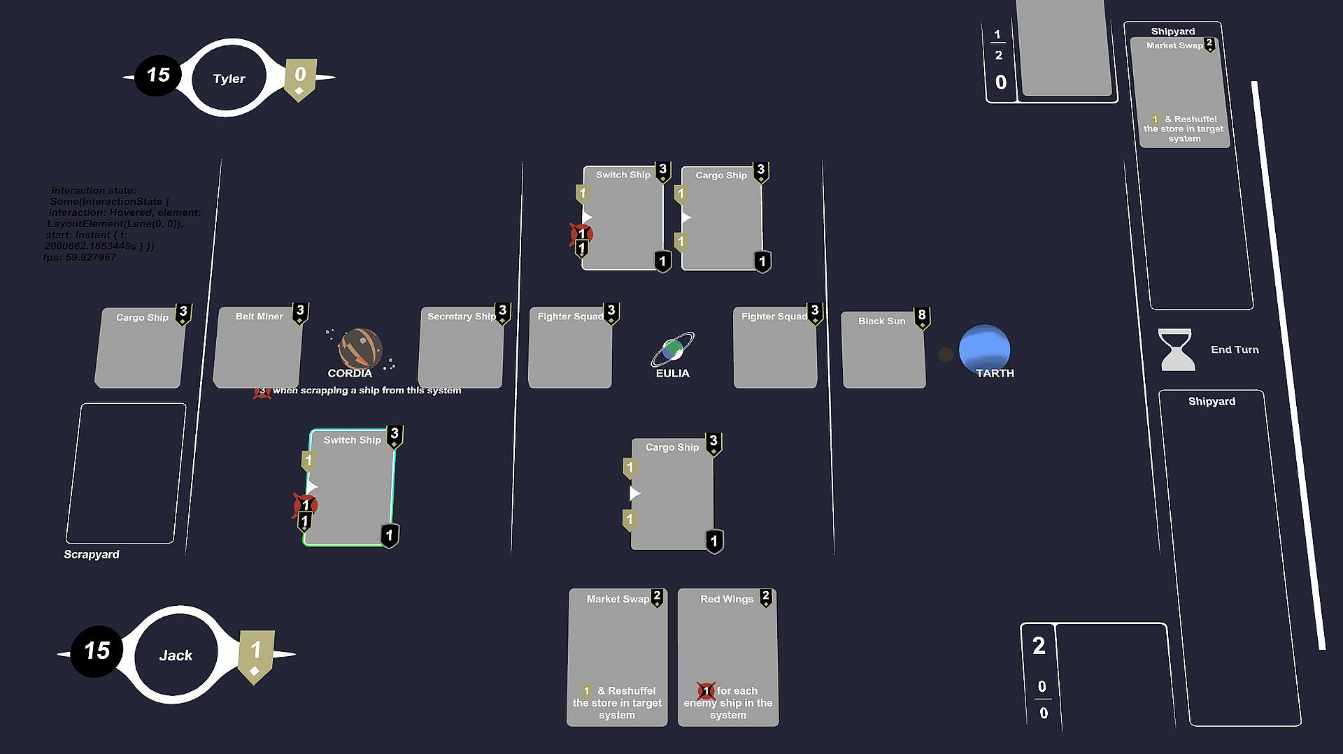 Every game starts with three randomly chosen planets, each with a unique ability and set of cards that drastically shape gameplay. Planets introduce powerful synergies that can be the key to victory. For example, Moira grants additional resources when ships warp into its system, enabling economic strategies, while Garreth damages smaller ships but rewards those who can navigate its hazardous environment. Mastering these synergies is crucial, as each planet’s effect can dramatically alter your tactical approach.
