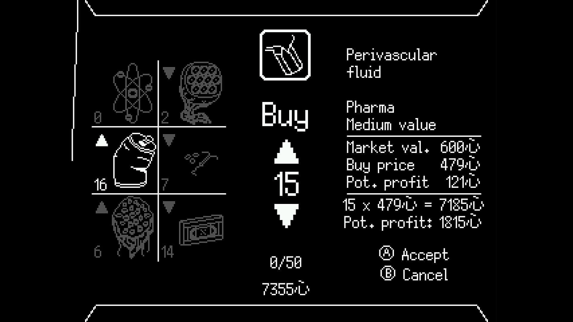 black screen is a lo-fi, laid back space trading game. Buy and sell goods, gear up your ship, and befriend characters in each sector of the galaxy so that they'll help you discover the mythical key to immortality, rumored to be hidden in the sector.