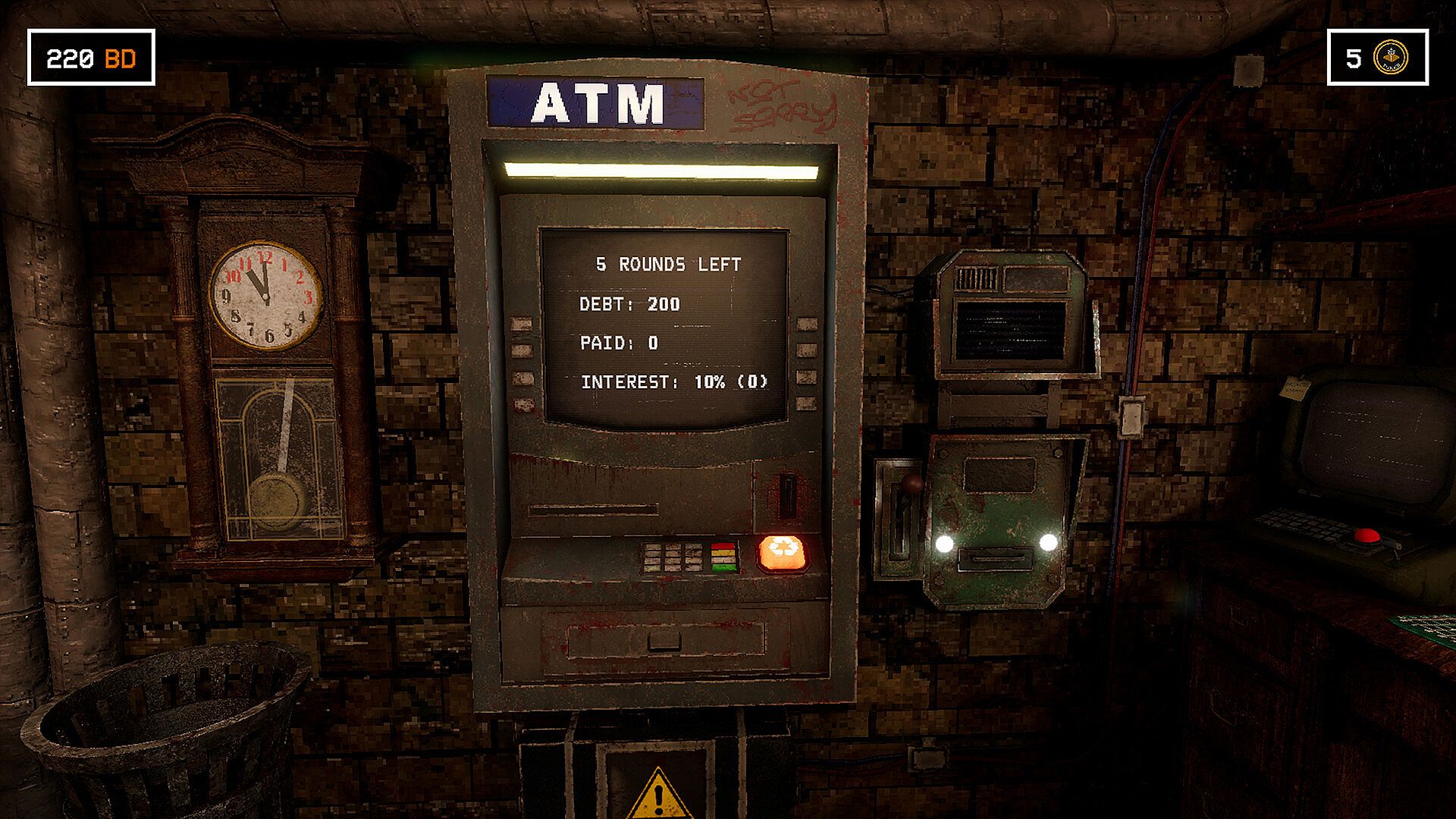 Your actions influence the ending: complete all six nights and pay off the debt in full to achieve the good ending and escape the room, or fail and become part of this cursed place in the bad ending.