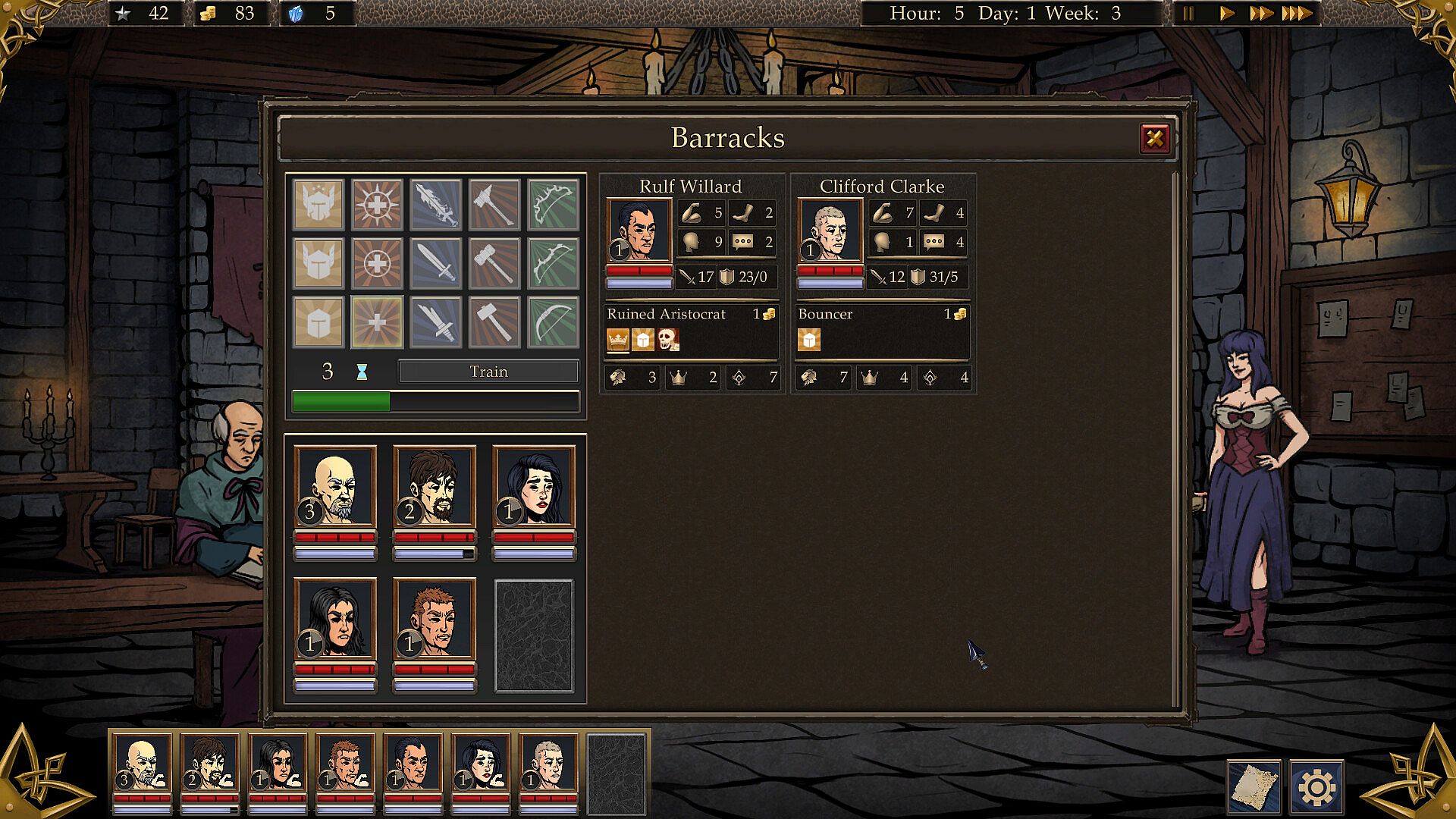 Manage your mercenaries wisely—an unreliable fighter can be worse than a dead one. Loyalty varies based on each character’s personality and your decisions. Not all mercenaries will be eager to intimidate the defenseless or rescue the innocent. Your heroes gain experience, improve their stats, and learn new combat skills. Equip them with trophies or purchased gear, but remember: don’t give an expensive sword to a mediocre fighter until they’ve proven their worth.