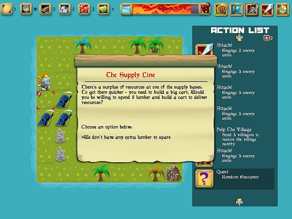 Prepare your units for battle by choosing the skills they master and equipment they wield! The main map has lots of possible random encounters and events that you can participate in.