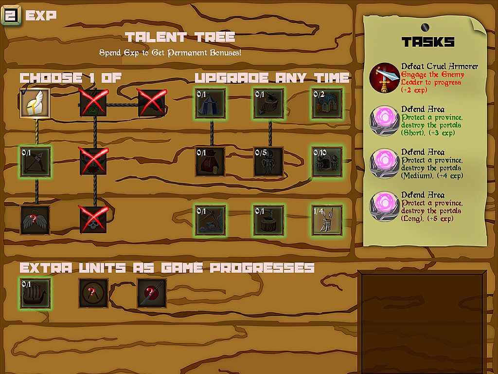 - Hire heroes that give bonuses to your units and can be revived after death