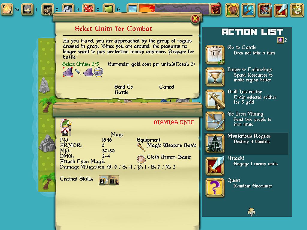 - Micromanage units by selecting what skills to train on them and what equipment to use