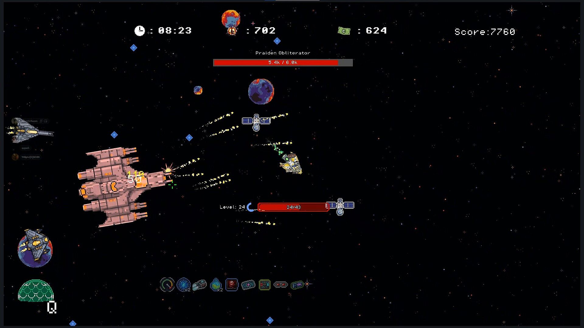 You find yourself in the endless void, surrounded by enemies. Each wave is deadlier, each blast more spectacular. Customize your spaceship with upgraded engines, unique effects, and power-ups; dodge enemy fire with precision while unleashing your arsenal across the screen!