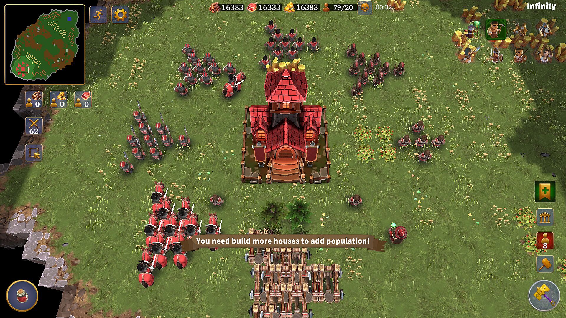 Classic base-building RTS: gather resources, expand your territory and reinforce your position on the map by recruiting units.