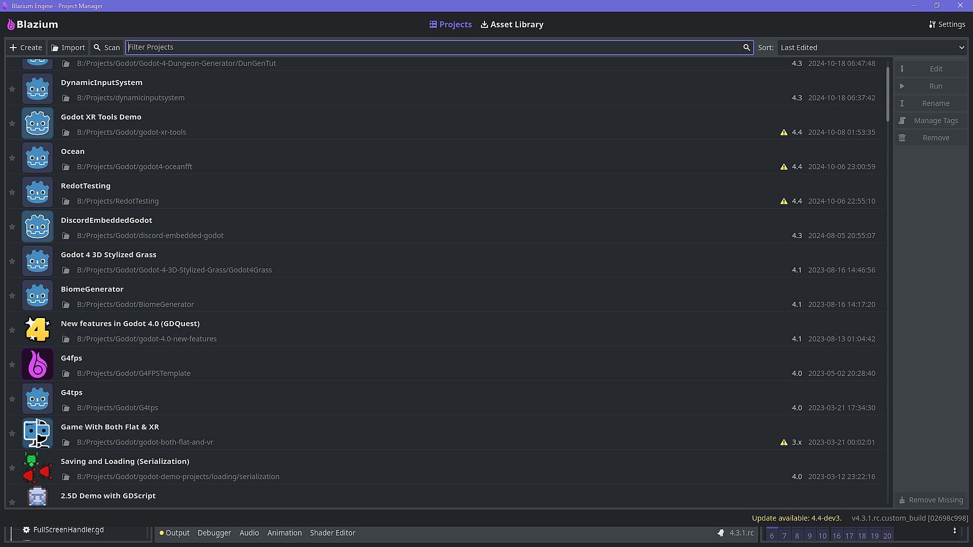 Blazium Engine is a feature-packed, cross-platform game engine to create 2D and 3D games from a unified interface. It provides a comprehensive set of common tools, so that you can focus on making games without having to reinvent the wheel. Games can be exported in one click to a number of platforms, including the major desktop platforms (Linux, macOS, Windows) as well as mobile (Android, iOS), web-based (HTML5) platforms and consoles (Switch, PS4 and Xbox One - via thirdparty publishers).