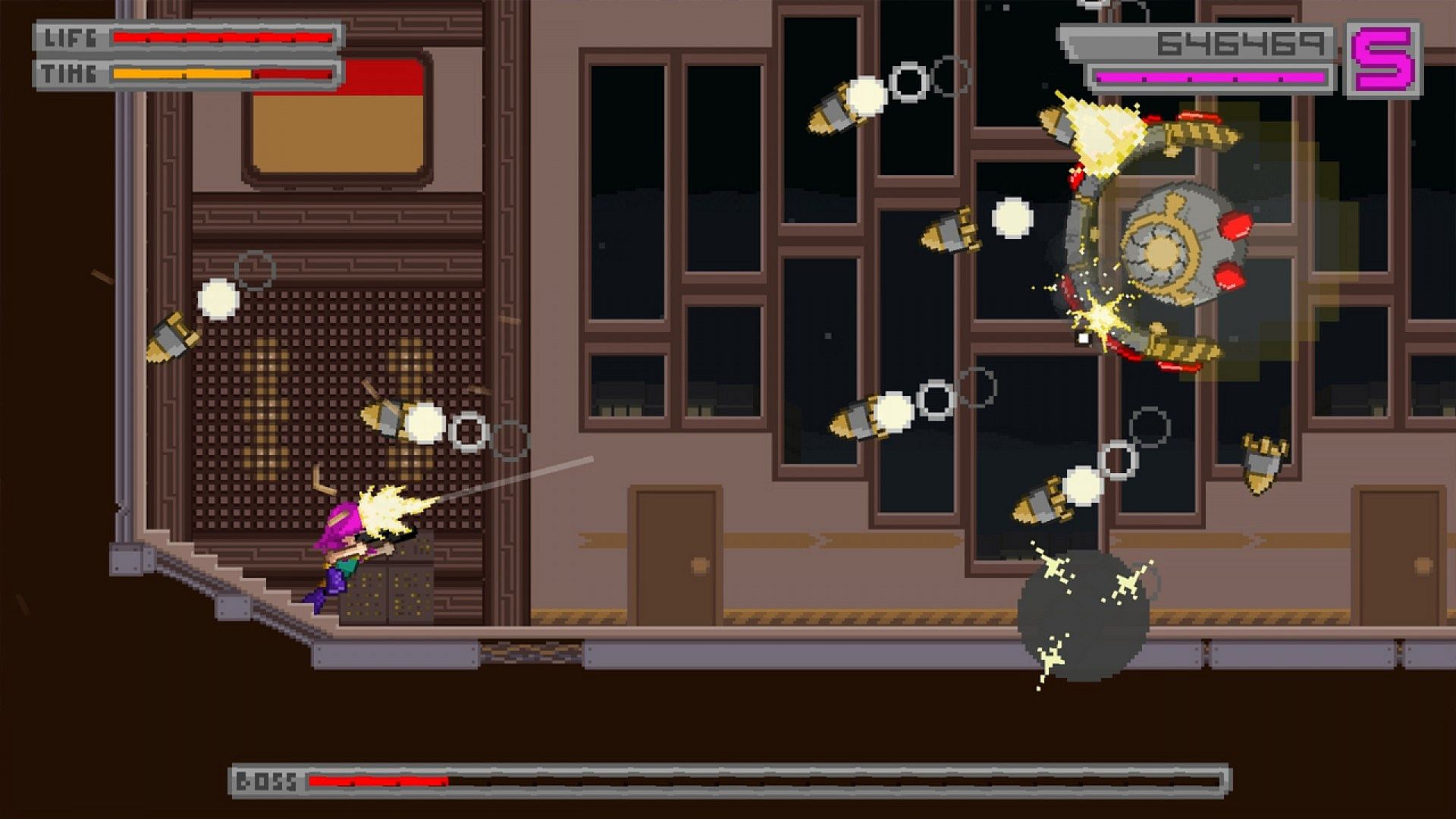 Bleed is an action-platformer focused on stylish, acrobatic dodging and fluid, challenging gameplay. There's no filler -- just you and your skills against seven levels of enemies, obstacles, breakneck set-pieces and inventive bosses!