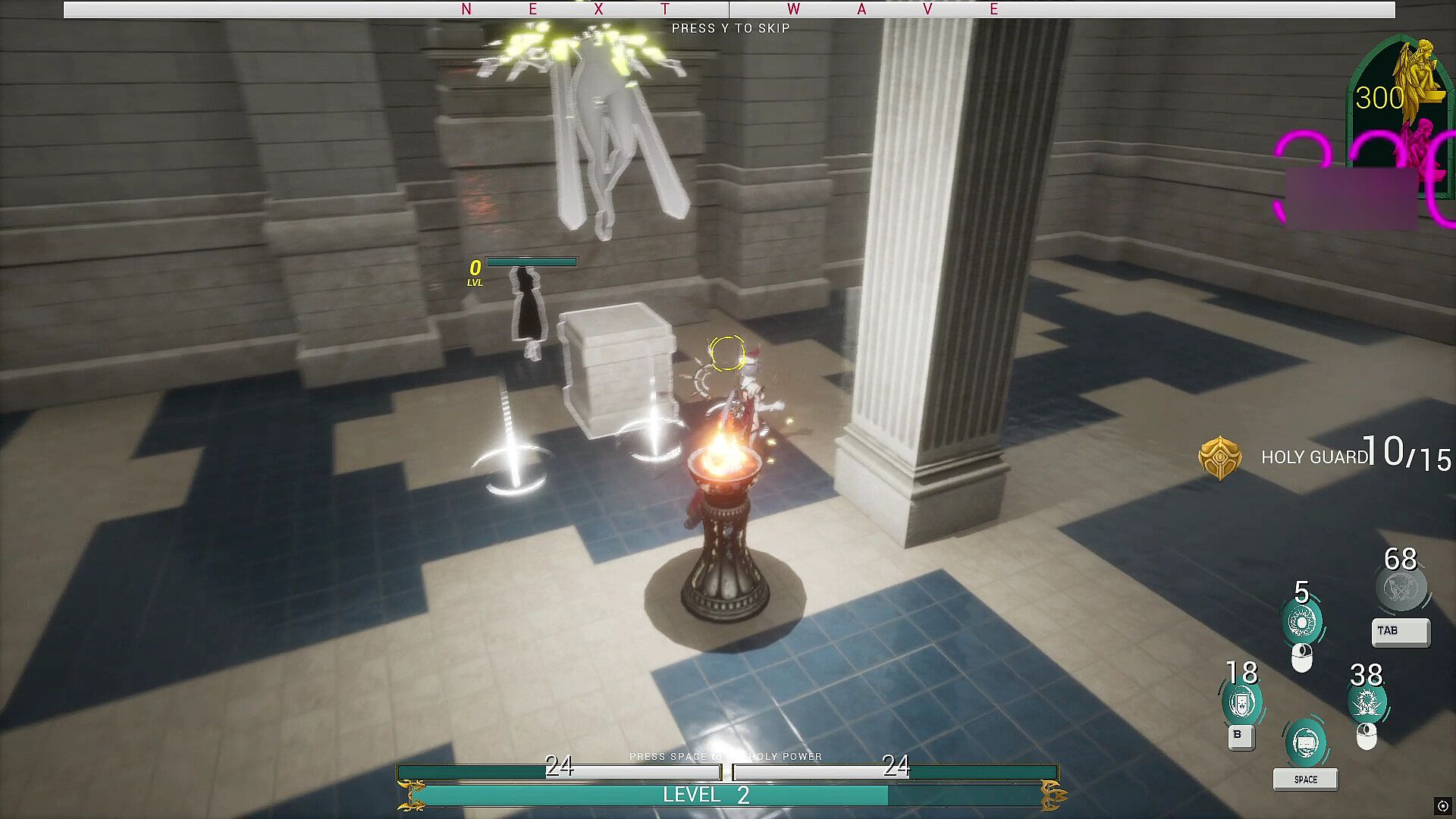 You play as the High Priestess MARY, whose mission is to defend the statue of the Mother Goddess ALEA.