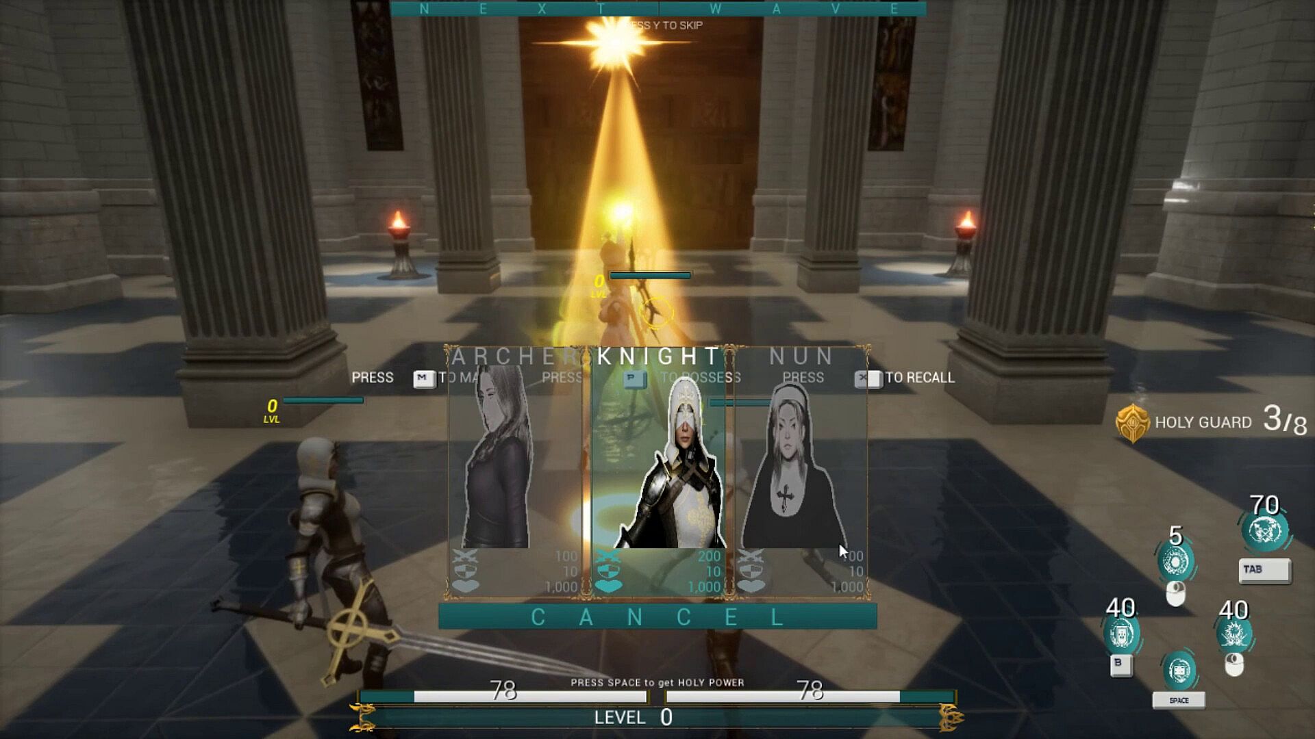 You can summon divine soldiers from the blessed army; among them are divine knights and nuns of blessing.