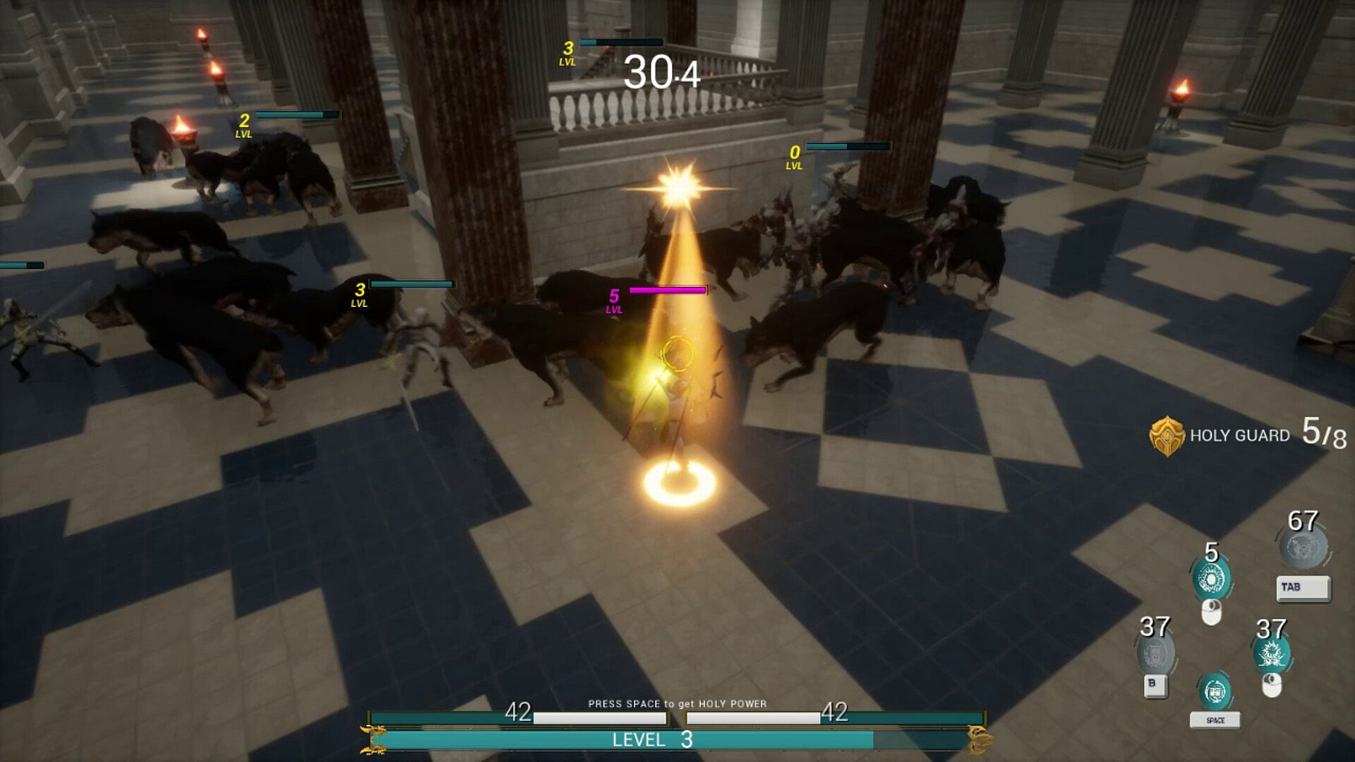 After a while, a group of enemies will appear and rush towards the statue to destroy it. You can't attack enemies yourself; for that, you need the Holy Soldiers!